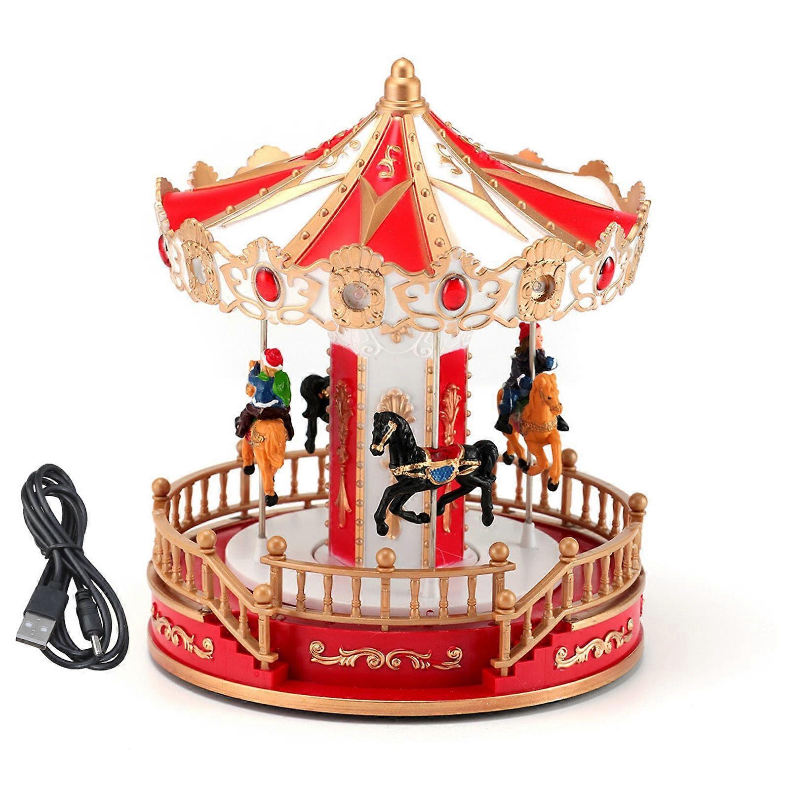 Christmas Carousel Music Box with LED Lights, 360° Rotation, Dual Power, Classical Melodies