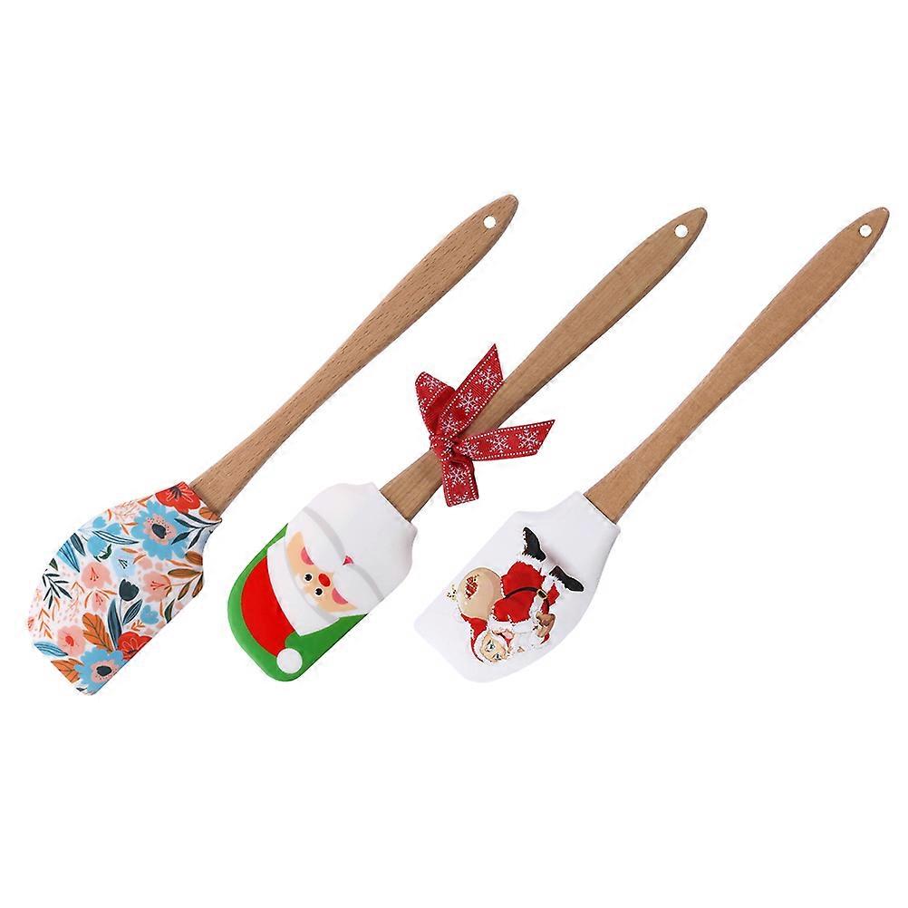 Christmas Silicone Spatula with Wooden Handle for Cake Scraping 6Pcs