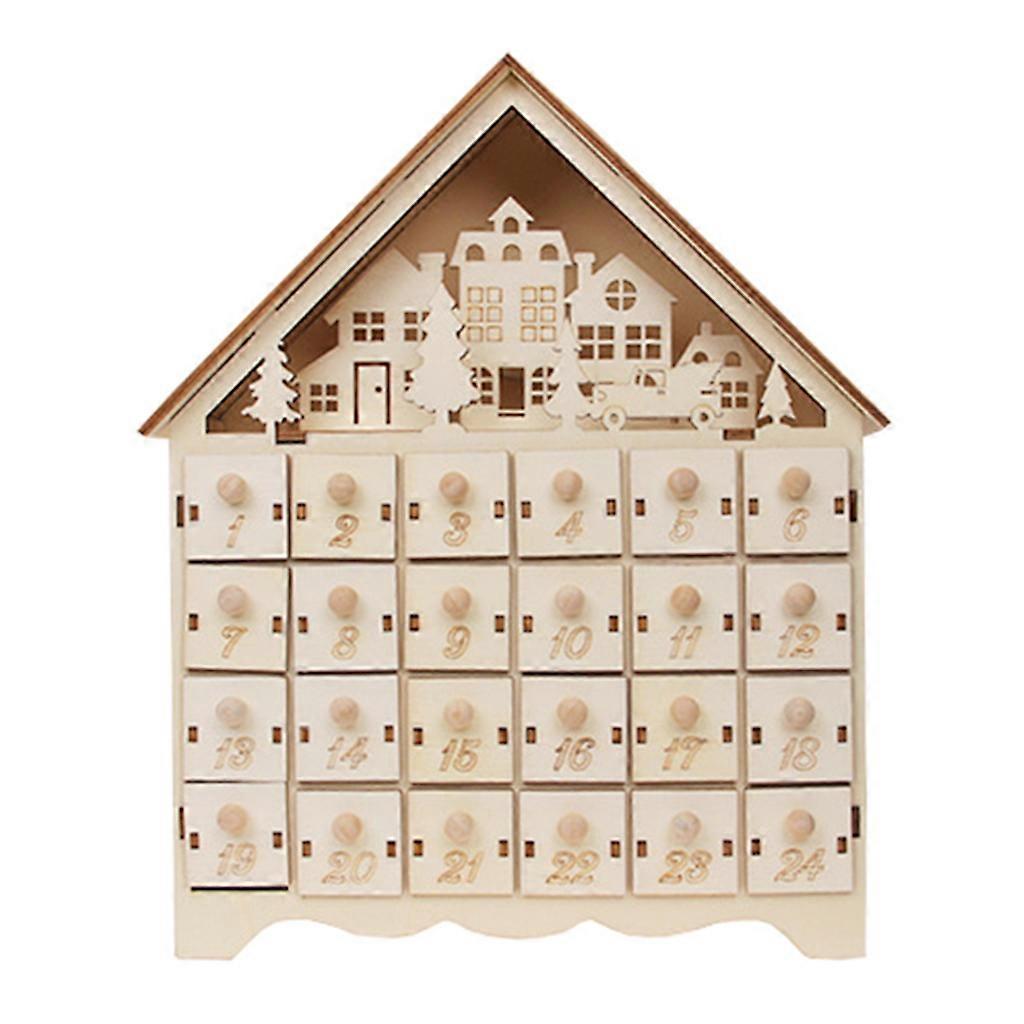 Christmas Snowman Wooden Advent Calendar Countdown Decor 24 Drawers for w/ LED L