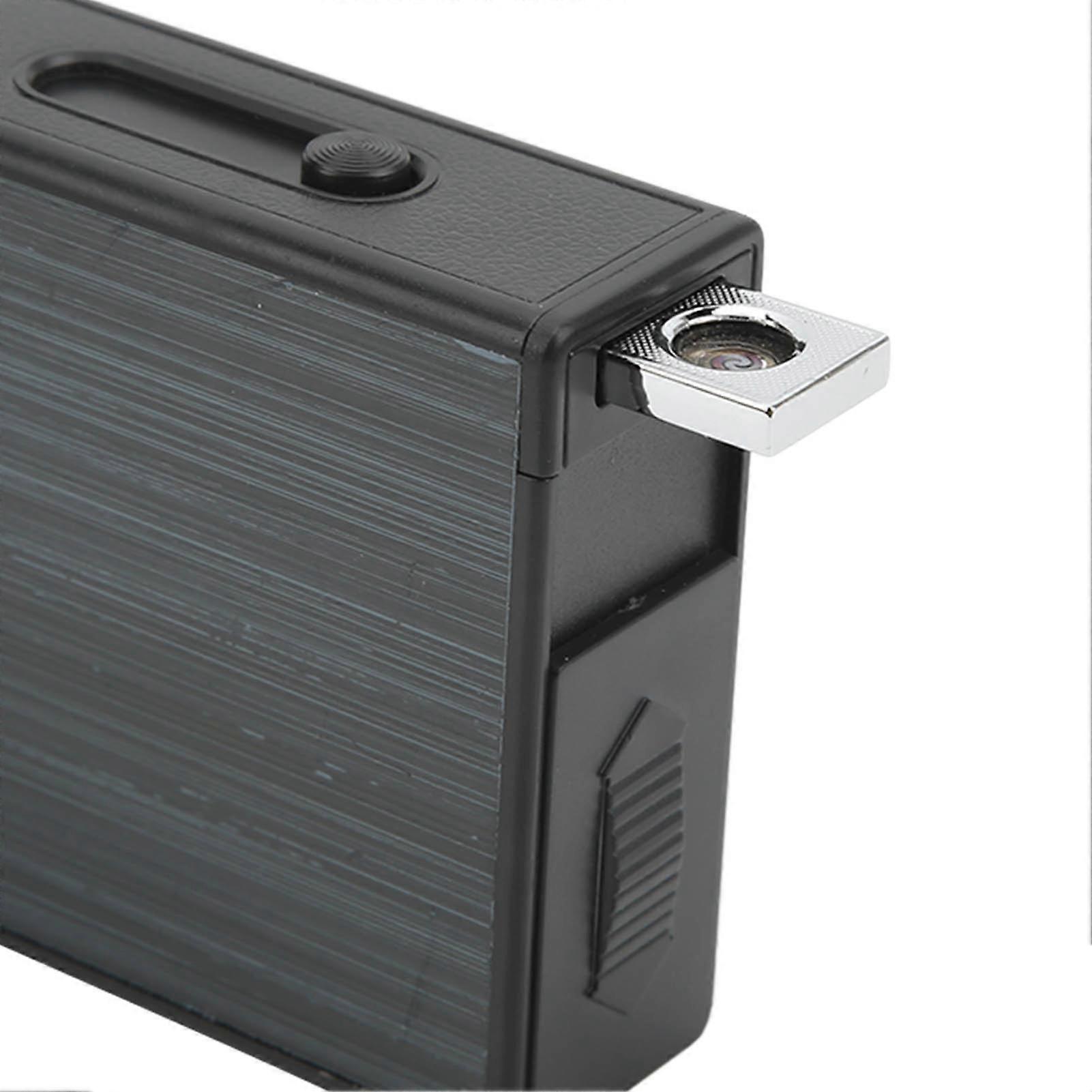 Cigarette Case Portable Black Brushed Matte Finish USB Charging Cigarette Storage Box with Lighter
