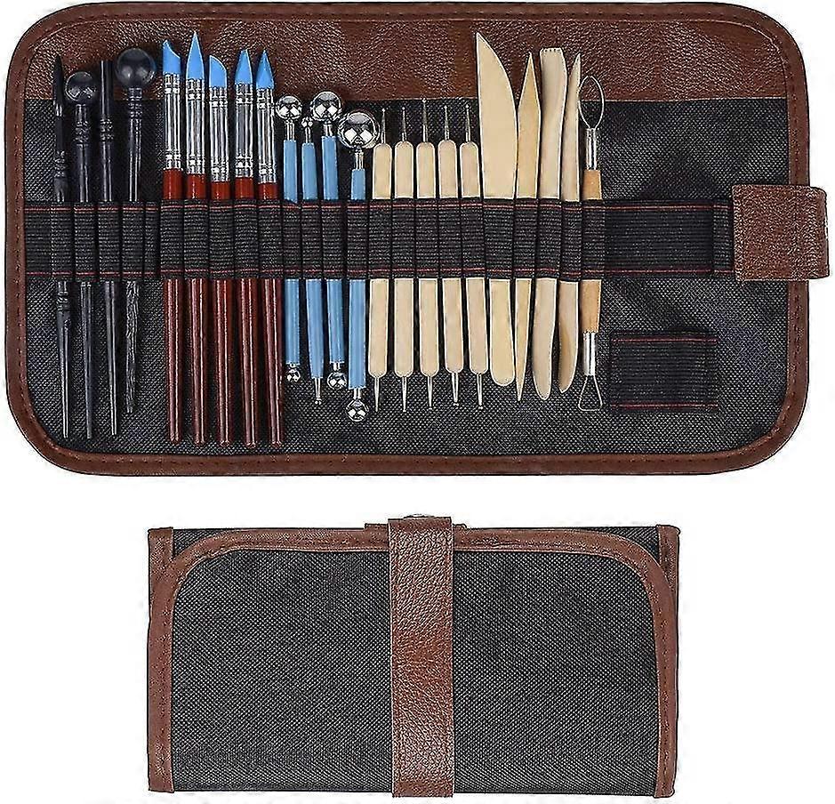 Clay Sculpting Art Tools Kit 24 Pcs Pottery Clay Sculpting Tools With A Storage Bag Ball Stylus Dotting Tools