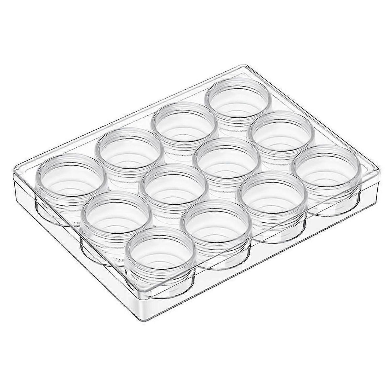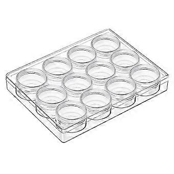 Clear storage system: makes keeping beads and findings organized a snap, also ensures the contents free from dust or rust, keep your small items clean and neat. Size and material: storage jars size is 1.5 x 1.5 x 0.79 Inches, made of clear plastic, and good for find the exact items. Easy to use: transparent and simple design, easy to open and off the lid, good sealing and store goods conveniently, each small jar is and can be taken out and carried at random. Package includes: 12 pieces clear plastic storage containers with screw-on lids, packing in one big plastic box, meed your types of needs. Wide use: suitable for storing small parts like beads, DIY diamond, glitters, nail crystals, rhinestones, jewelry, necklaces, rings and other small crafts; It can also use as a storage containers.<br><br>Colour:Transparent Material:Plastic Size:S:1.5 x 1.5 x 0.79 Inches<br><br>Package Contents: 1 * bead organizer<br><br>Only the above package content, other products are not included. Note: Light reflection and different displays may cause the color of the item in the picture a little different from the real thing. The measurement allowed error is +/- 1-3cm.