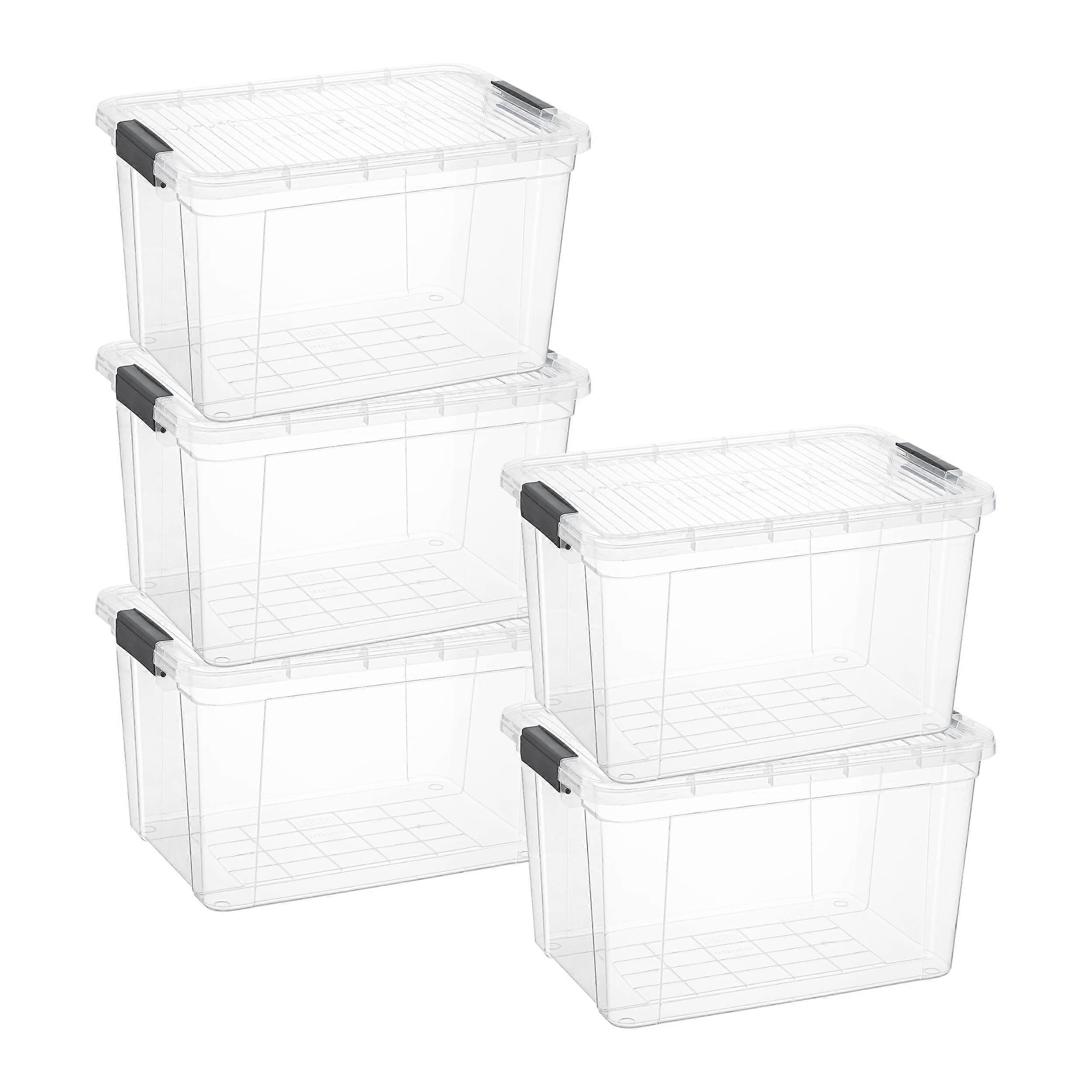Clear Storage Boxes With Lids, 20 Qt Deep BPA Plastic Containers, Stackable Storage Bins For Home Office Dorm, 5 Pack