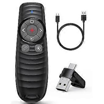 Clicker Wireless, 2-in-1 Usb/type C Rechargeable Presenter Remote Control For Powerpoint, Ppt Clicker Red