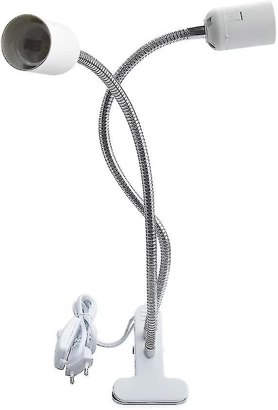 Clip Lamp Holder E27, Clamp Holder With 2 Sockets, With Double On/off Switch, Gooseneck Hose 360 Degree Rotation, For Plants Lamp Table Night Reading