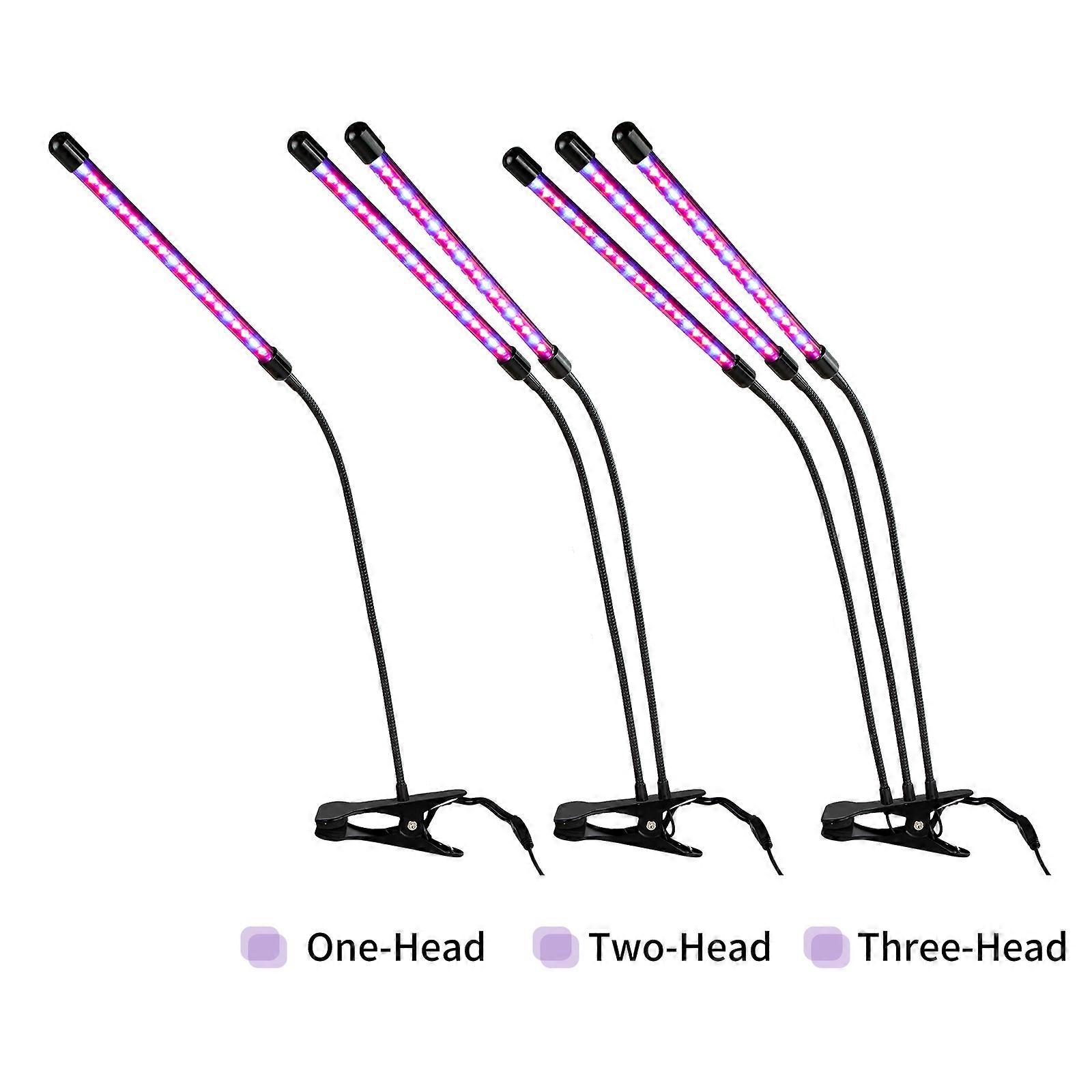 Clip-on Three-Head Indoor Plant Grow Light with Red&Blue Spectrum 3 Light Modes 9 Dimmable Levels Adjustable Gooseneck 3/6/12H Timer