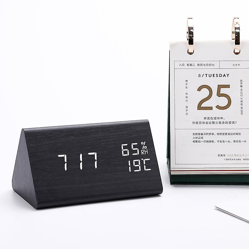 Clock Digital Wooden Alarm Clock, LED Electronic Time Display Beside Clock 3 Alarm Settings, Humidity & Temperature Sensing for Bedroom, Bedside,