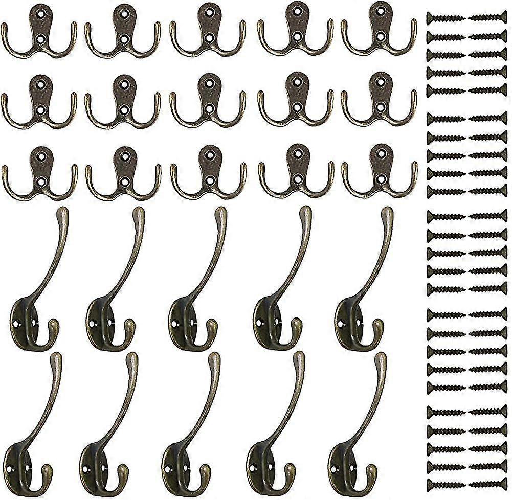 Coat Hooks, 15 Pieces Double Wall Hooks Wall Coat Hooks And 10 Pieces Gooseneck