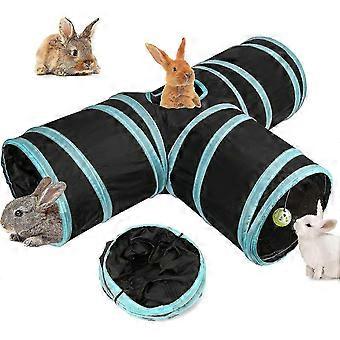 Collapsible 3-Way Bunny Tunnels & Tubes - Activity Hideout for Small Animals, Dwarf Rabbits, Guinea Pigs & Kittens - Blue Zekai Toy