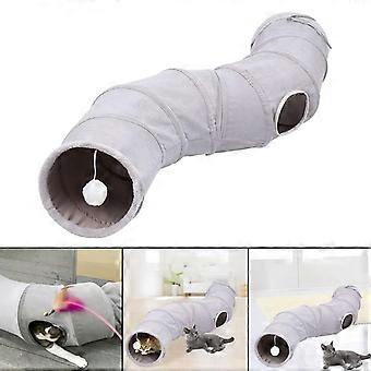 Collapsible Cat Tunnel Toy Interactive Toy S-Shaped Play Tent with Peek Holes for Small Animals