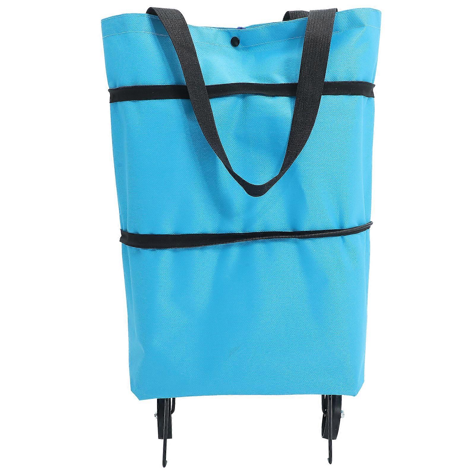Collapsible Trolley Bag Shopping Cart Reusable Folding Shopping Bag with Wheel Sky-blue