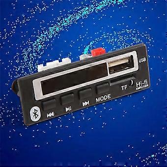 Dual Decoding Supports MP3/WMA/WAV/APE Lossless Format Music; Supports Infrared Remote Control Operation At A Distance Of 5-10 Meters; Support Bluetooth Function, Bluetooth Version 5.0; Support External Audio Source Input Line In; With Color Screen Digital Tube Display; Supports Fm Radio And Frequency Band(87.5MHZ-108.0MHZ); Supports Mmc/Sd/ And Other Cards, And Supports Usb Interface (U Disk); Power-Off Memory Function; Buttons: Four-Button Multi-Directional Control, VOL-/AUTO/VOL+/MODE; JQ-D082BT(With Bluetooth) Size: About 68x23mm; Board Depth: About 32mm Function Introduction: Support Bluetooth Function (Bluetooth Version 5.0)/Dual Decoding Of Mp3, Wma, Wav, Ape Lossless Format Music/Read Usb Disk/Read Tf Card/Radiate Fm/External Audio Source Input Line In (Aux)/Infrared Remote Control/ Power Off Memory Note: Different Batches May Have Differences In Product Appearance, Color, And Printed Characters, Which Will Not Affect The Use Colour:As Shown Material:Metal+Plastic Package Contents: 1 x Decoder 1 x Remote Control (Requires 1 CR2025 Battery, Not Shipped) 3 Sets Cord Sets Only the above package content, other products are not included. Note: Light reflection and different displays may cause the color of the item in the picture a little different from the real thing. The measurement allowed error is +/- 1-3cm.