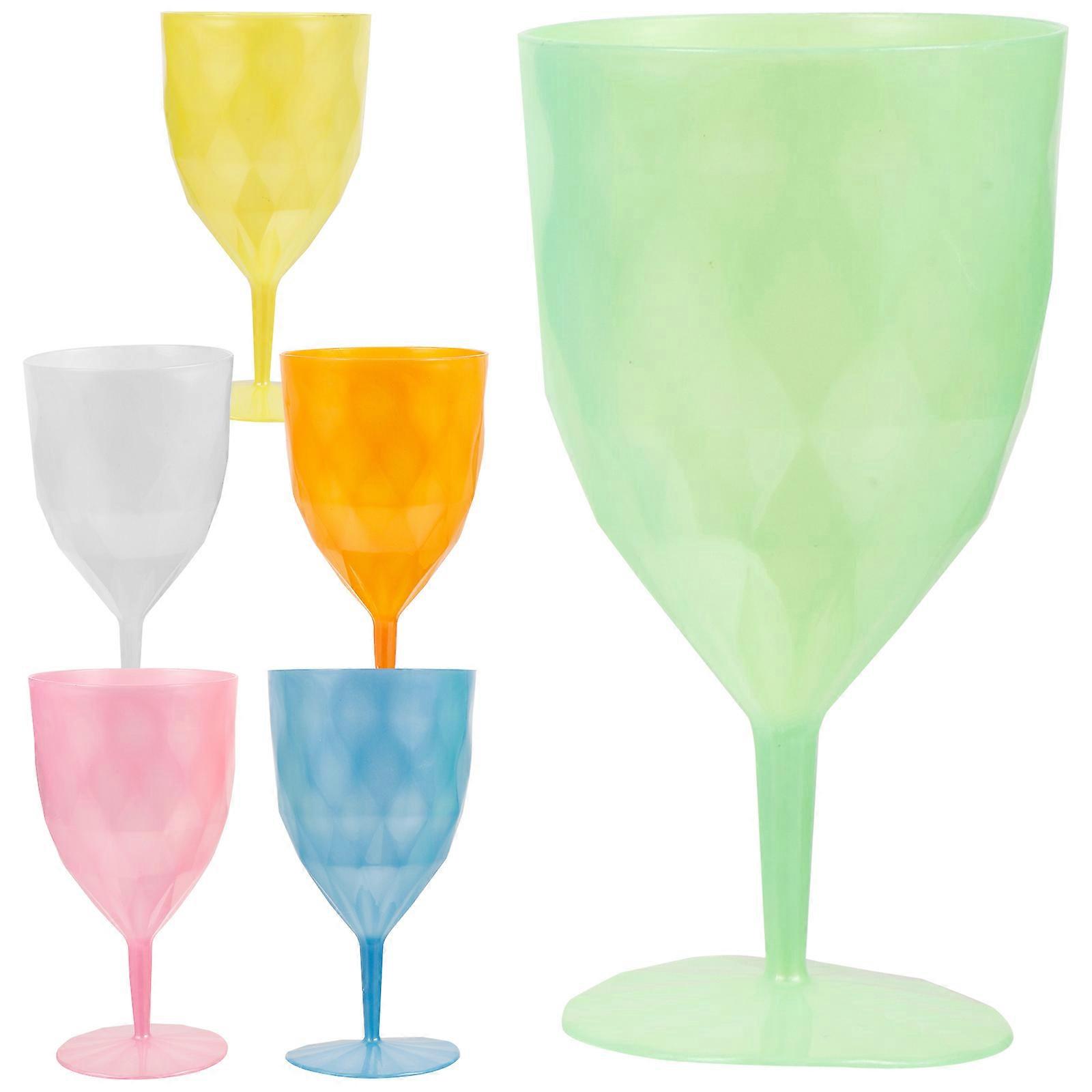 These decorative Wine Cups, made of plastic material, and practical for lasting use. Creative and design with excellent workmanship ensuring their popularity. This wine cup promote and social drinking experience. Features -Color:Assorted Color -Material:Plastic -Size:16.00X8.50X8.50cm/6.29X3.34X3.34in - Made of plastic material, which features with stability and durability, very hard and smooth for daily usage. - Easy to hold, does not tip and spill, classic and smooth. And you can send it as a thoughtful gift. - Enhancing every personal and social drinking experience and looks great on any occasion. - The wine cup is perfect drinking cup for liquor, fruit wine, coffee, juice, bubble tea, hot and cold drinks. - Wine cup can be used for parties, weddings, festivals, parties, picnics, buffets, wine tastings, gift anniversaries. Package list: 6 x plastic juice cups