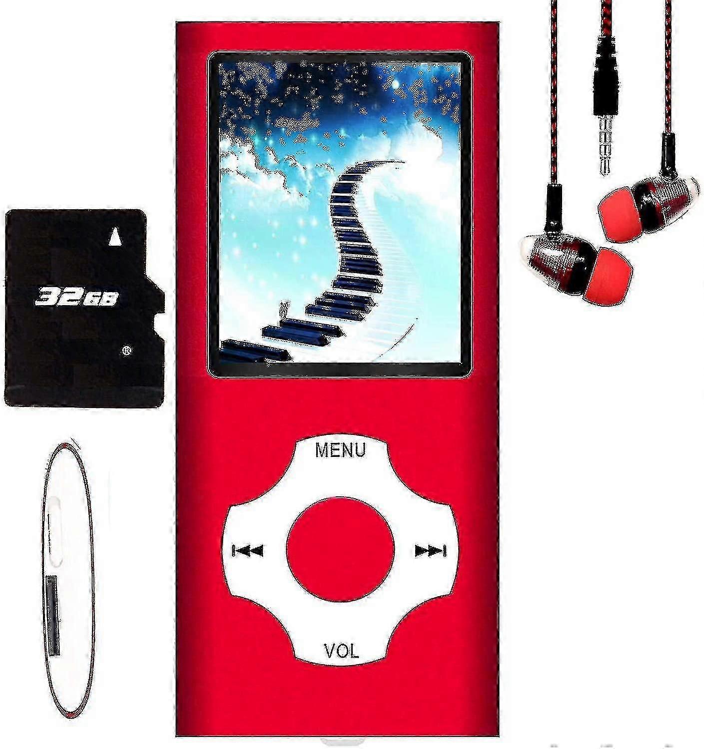 Feature:* Supported Audio Formats: MP3, WMA, AMV, AVI.* Supporting a massive 64GB/32GB/16GB memory, you will be able to store approximately 11000+ MP3 songs, more than enough for that evening of easy listening you had planned. Itunes are not required, as this wonderful device prefers good old fashioned, freely available for mp3 format.* Supported Video Formats: AMV, AVI* USB2.0 Full Speed with mini USB 2.0 Cable.* TXT e-book reading JPEG picture support, reading, browsing FM stereo radio, Auto & manual scan modes.* Recording the programs from FM radio,7 kinds of EQ: nature, rock, pop, classic, live, jazz and bass.* Please note that this is NOT an Apple Ipod. 1.82 inch TFT LCD, full color display Support AMV video.Package Contents:* A MP3 Player(32GB memory)* A Earphone* A USB Cable* A User Manual