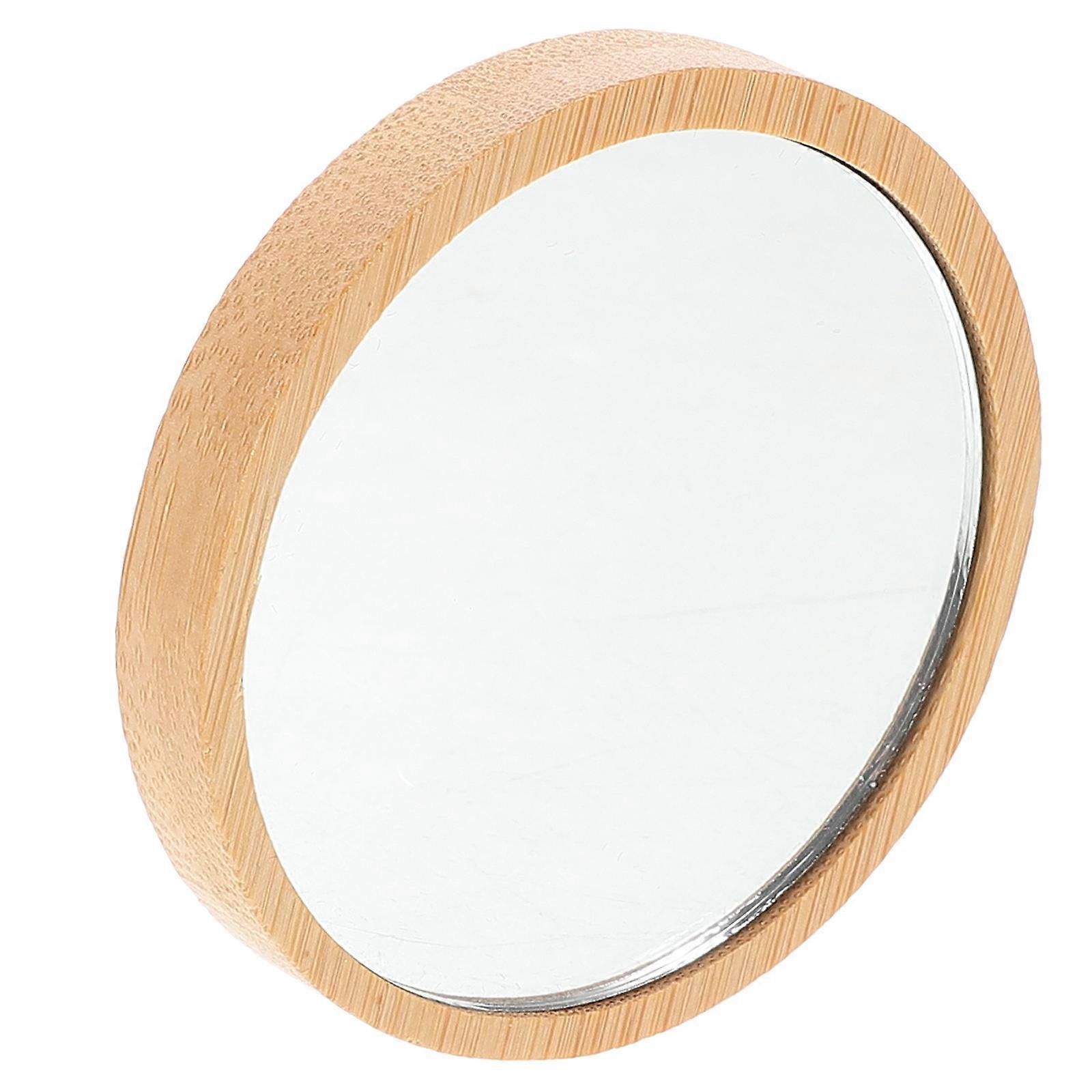Compact Mirror Handheld Mirror for Girls Round Wood Mirror 7.00X7.00X1.00CM For On-the-go Touch-ups 1Set