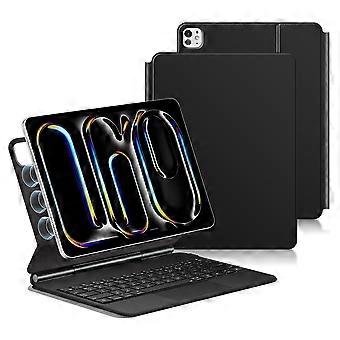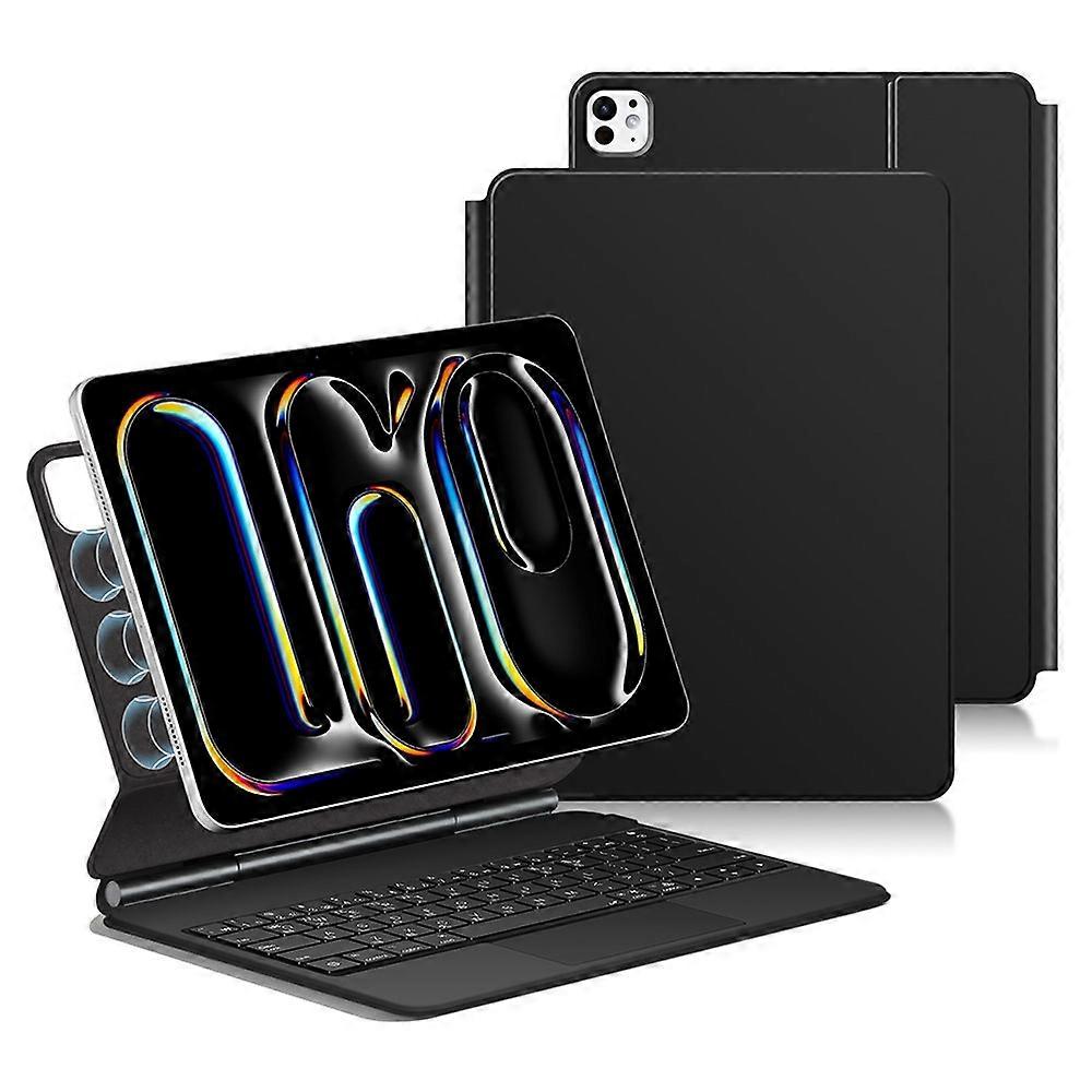 Compatible For iPad Pro 13 (2024) Smart Pogo Pin Direct Connection Keyboard (Korean Layout) + Leather Tablet Case