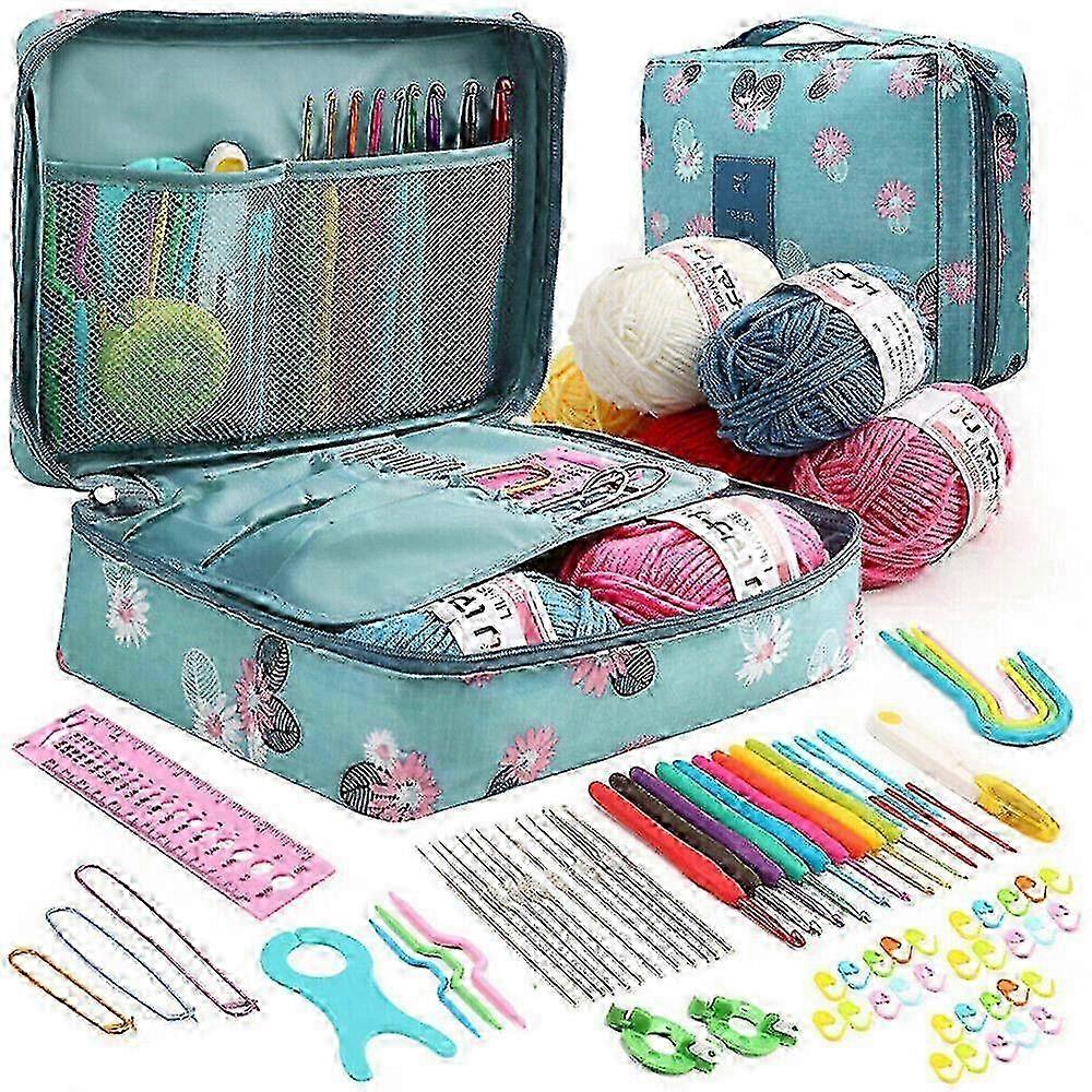 Complete Crochet Kit for Beginners, Ergonomic Soft Handle Crochet Hooks and Assorted Yarn Colors, Best Crochet Kits for Adults with Hangable Stor