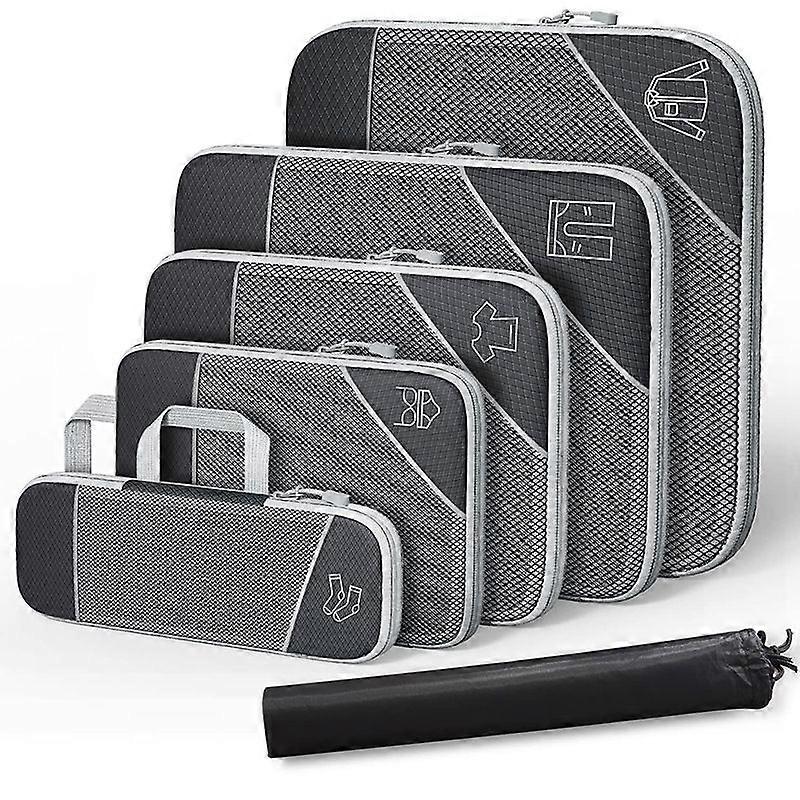 Compressed Packing Cubes For Travel, 6 Pieces Of Expandable Luggage Storage Bag Compressed Cubes For Packing Mesh Top And Durable Zipper