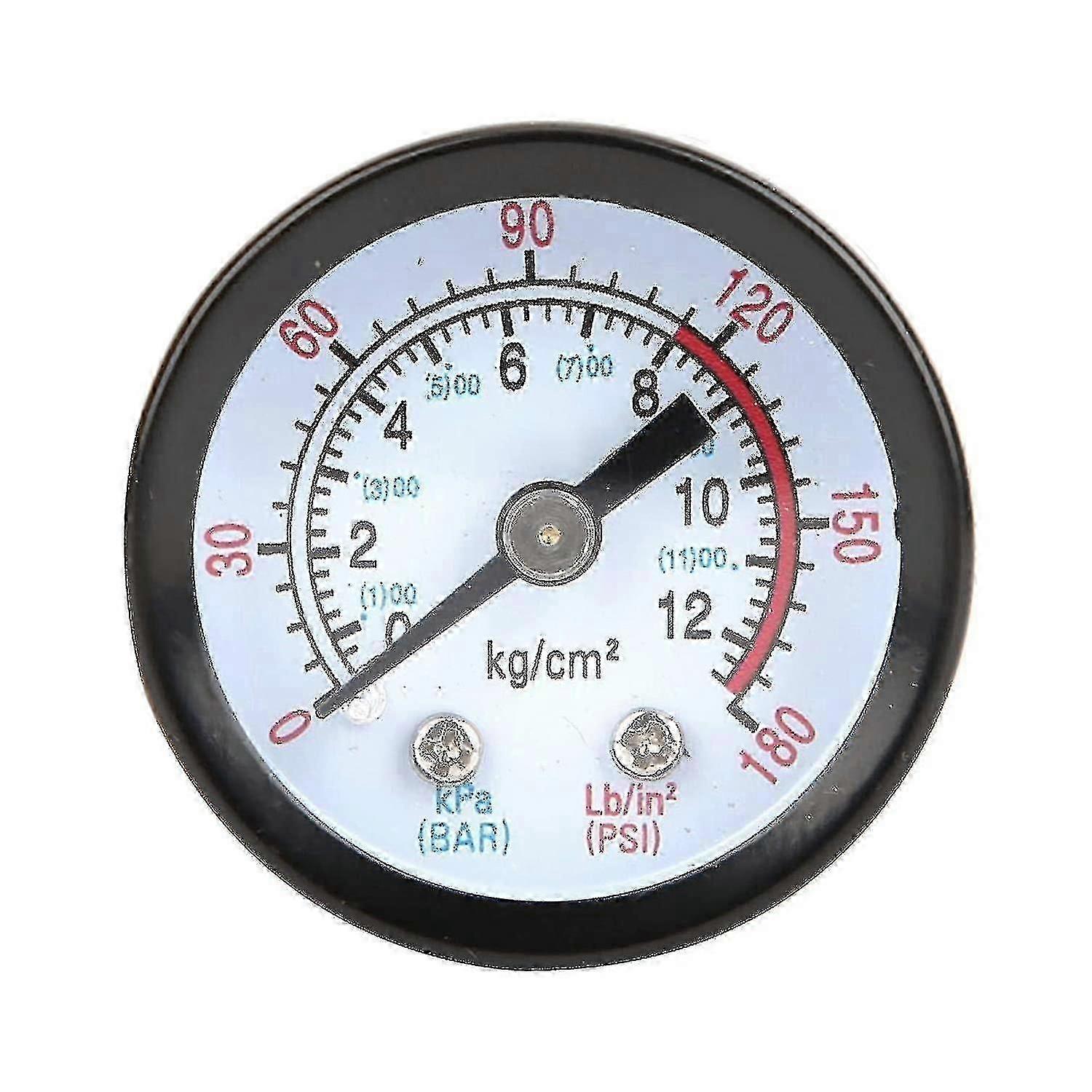 ApplicationThis air compressor pressure gauge is suitable for screw compressors and reciprocating compressors Compressor Air compressor pressure gauge Easy to read dial, reading is more convenient. The easy to install and use meter is a practical accessory for air compressors Advantage The pressure gauge has a compact structure and a small size, which is convenient for the operator to disassemble and assemble: Iron shell Diameter: approx. 42mm/1.7in Thread Diameter: Approx. 10 mm / 0.4 in Pressure range: 0 ~ 180 PSI, 0 ~ 12 bar Applicable compressor types: screw compressors, reciprocating compressors Package list: 1 x Air Compressor Gauge Thank you for your understanding. 2. Monitors are not calibrated same, item color displayed in photos may be showing slightly different from the real object. Please take the real one as the standard.