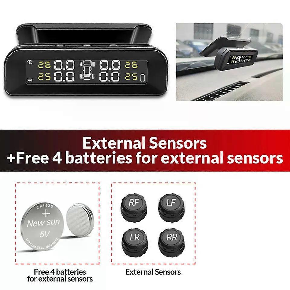 con E-ACE K07 TPMS solar sensor intelligence Wireless Tire Pressure Monitoring System Temperature Warning With 4 sensors