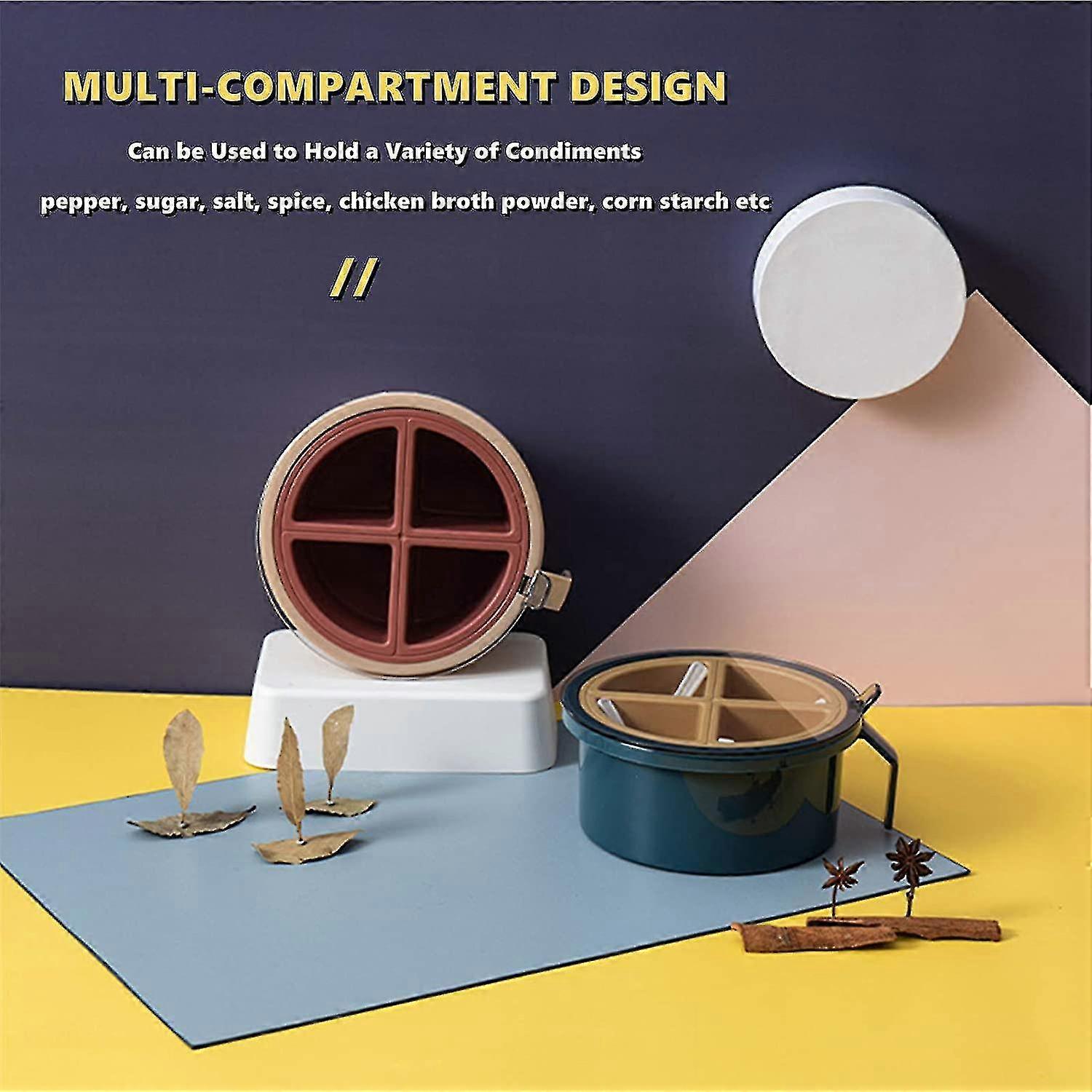 Condiment Box With Spoon 4 Compartments Condiment Storage Container Kitchen Round Condiment