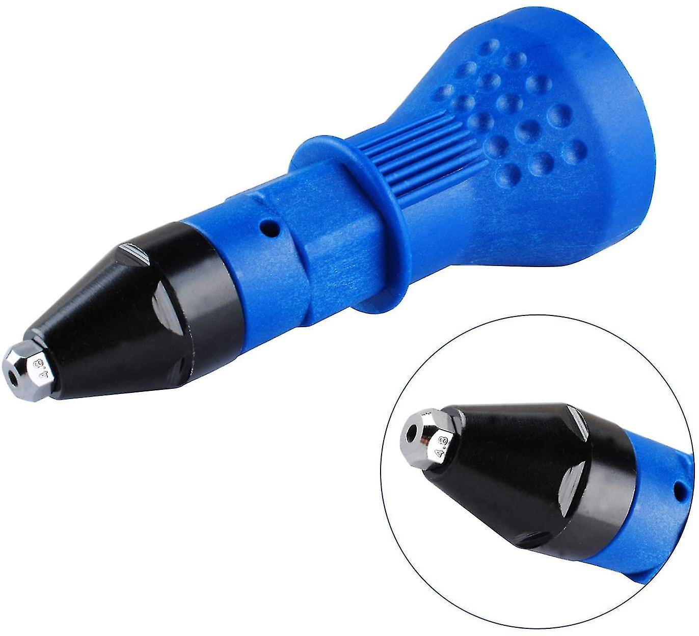 Accessories: This set of cordless electric rivet gun drills, 4 pieces of nozzle size are 3/32", 1/8", 5/32" and 3/16" They apply at different rivet sizes. Excellent: Less noise; Small size and easy to carry, more efficient. Convenient: Quick release and installation. Excellent ergonomics, high strength and excellent added features. Multifunction: As a tool accessory, this rivet gun can be combined with different types of power tools. Long-lasting: All-metal construction designed inside; 3pcs threaded head for replacement. It is convenient to change when broken. Package size: 17x7.5x6.5cm; 500 g Colour: Blue.Items from Sheng Xinshun's shop