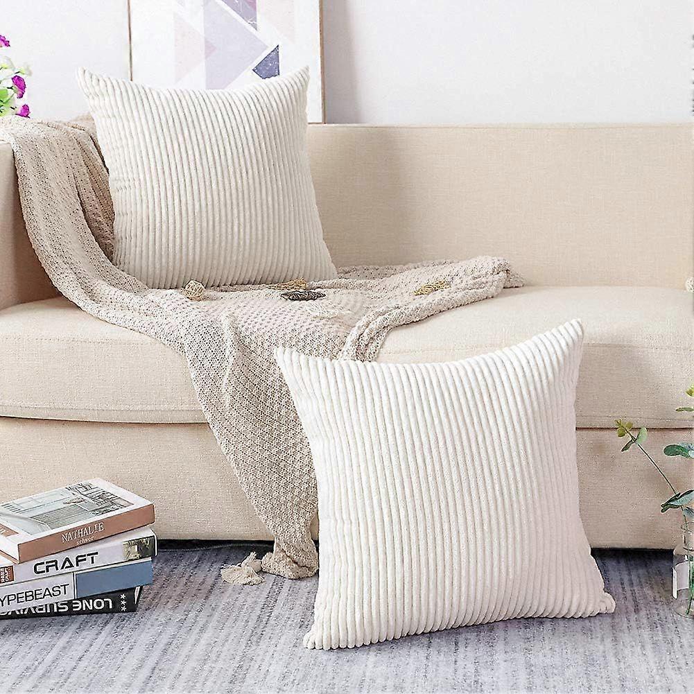 Corduroy Decorative Pillow Cases - Soft Plush Cushion Cover Set (Beige 40 x 40 cm)