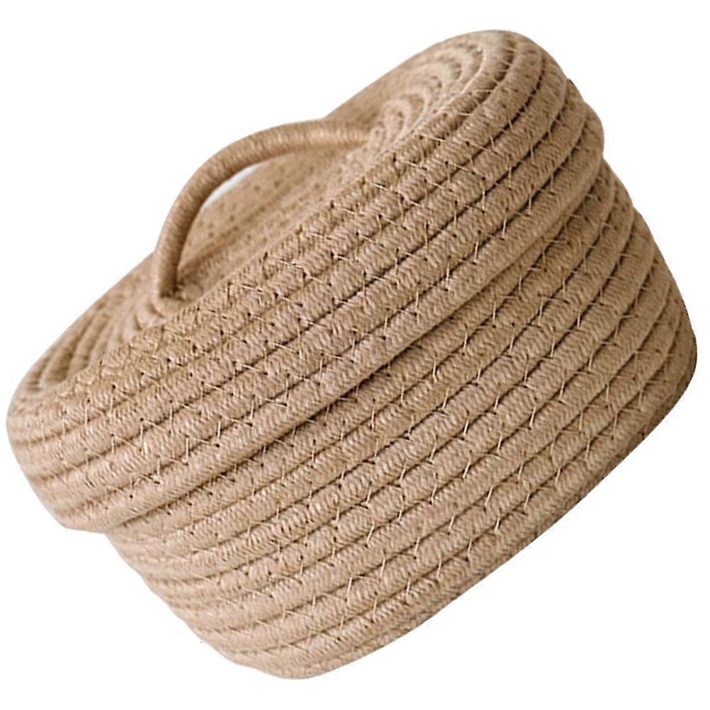 Cotton Rope Woven Basket for Storage with Lid Multi-Functional Khaki Design