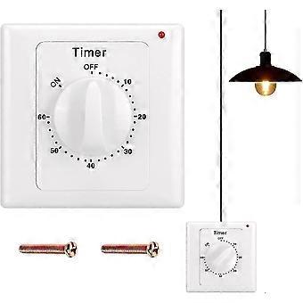 Mechanical countdown switch: This is a mechanical countdown switch, the time range can be controlled by the switch button. The countdown switch can operate electrical appliances during the setting time and stop automatically. Precise timer: countdown switch The bowl is made of high quality plastic, which makes it environmentally friendly, safe and durable. The shortest set time is 1 minute and the longest set time is 60 minutes. The timing is very precise. Energy saving: countdown timer is the ideal energy saving solution for bedroom, exhaust fan, air conditioning system. watering, garage and laundry room. Save energy, adjust the time according to your needs. Applicable in many places: Our countdown switch is very suitable for your bathroom, cabinet, pantry, garage, laundry room, spa, enclosed patio, etc. Easy to use: Large time scale allows you to set the time quickly and read the time clearly. The LED indicator can remind you whether your electrical appliances are on. Features: Housing material: plastic. Switching mode: single control Installation method: surface installation Rated voltage: 110-240V. Maximum current: 10A. Minimum time range: 0 min Maximum time range: 60 minutes Approximate dimensions: 86 x 86 mm. Features: < p>The countdown timer switch is very easy to install with cable connector type, it has common wall socket panel, also convenient to replace. < p>Energy saving, the water pump and home appliance work according to the time you set and no need to worry about it. The timer switch countdown is very suitable for lamps, exhaust fans, heaters, pumps and is compatible with LED, CFL and incandescent bulbs. Contents:< /p> 1 timer switch. 2 fixing screws