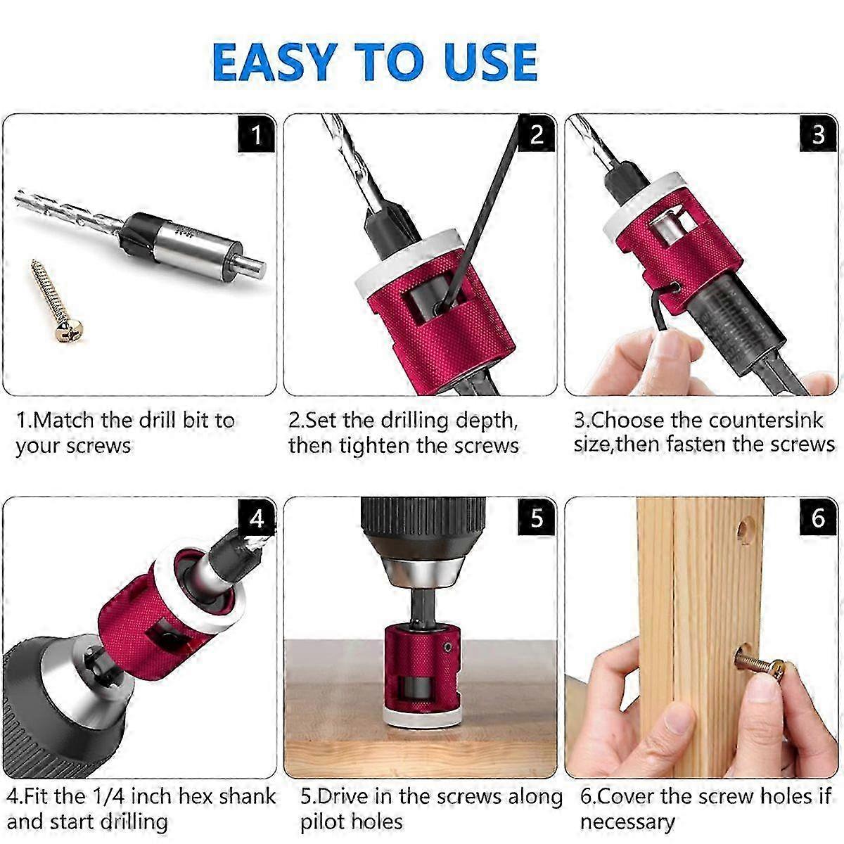 Countersink Drill Bit Set with Adjustable Depth Stop, 1/4" Hex Shank Quick Change Drilling Tool Kit
