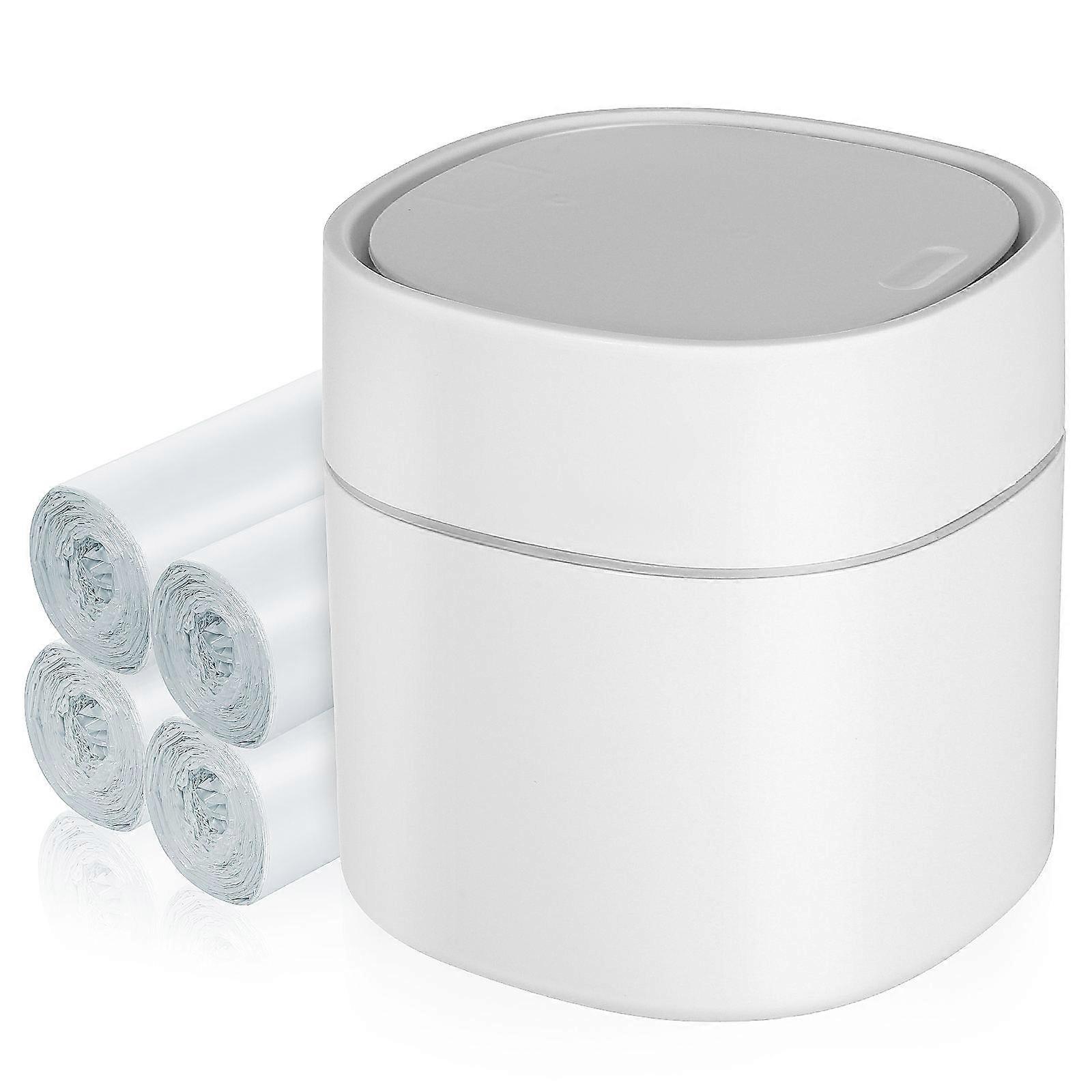 Countertop Garbage Bin Desktop Trash Can Waste Collection Rectangular White 13.80X13.20X13.20CM Press Lid 1Set