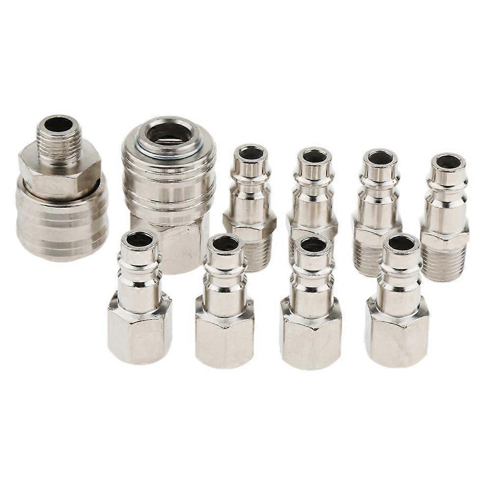 Hardware -Female Thread Coupling Ends Highlights Generic Brand Female Thread Coupling Ends Description: Easy to install 1/4" coupler and connectors for widespread use Durable solid iron and nickel-plated construction is durable and corrosion resistant Well finished, high quality 100% New Specification: 1 Pcs 1/4""BSP Male Quick Coupler 1 Pcs 1/4""BSP Female Quick Coupler 4 Socket 1/4""BSP Female 4 Socket male 1/4""BSP Material: Iron, nickel plated Color: silver Package includes: 1 quick coupler