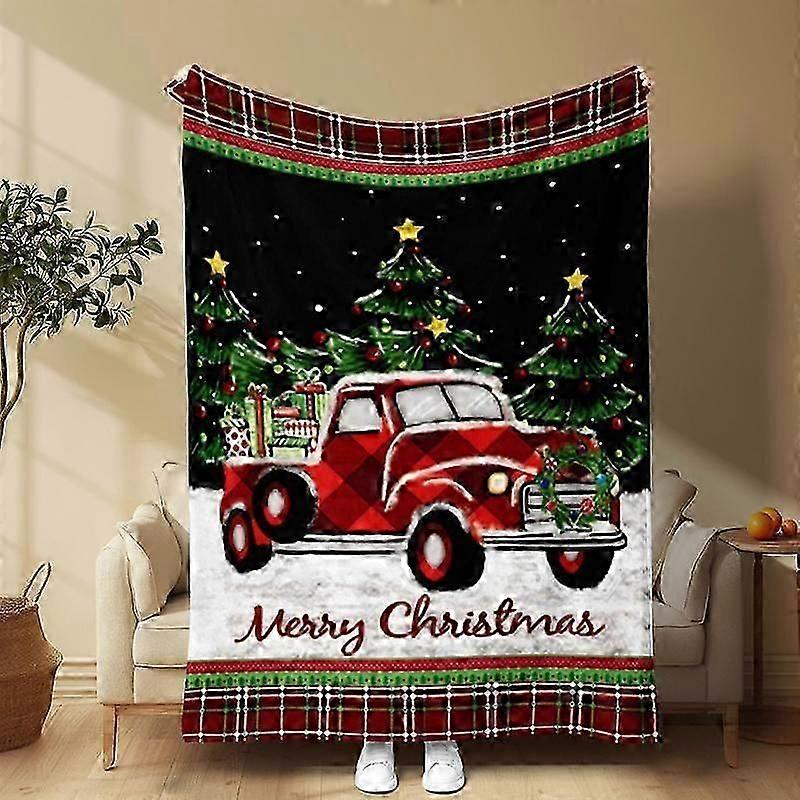 Cozy nap blanket with festive car and tree design