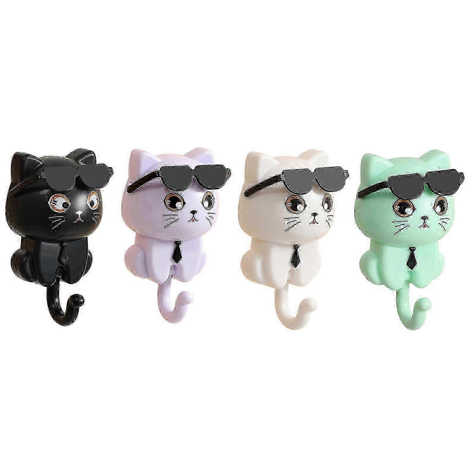 Creative Cartoon Cat in Sunglasses Gravity Hook - Adhesive Coat Hooks & Key Holder for Wall Decor and Fun Storage Solution