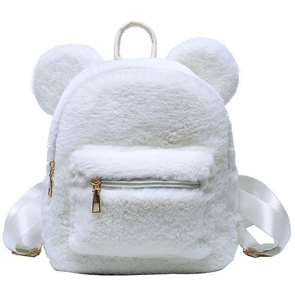 Creative Plush Storage Bag Winter Fluffy Backpack Girls Bear Ear Pattern Backpack