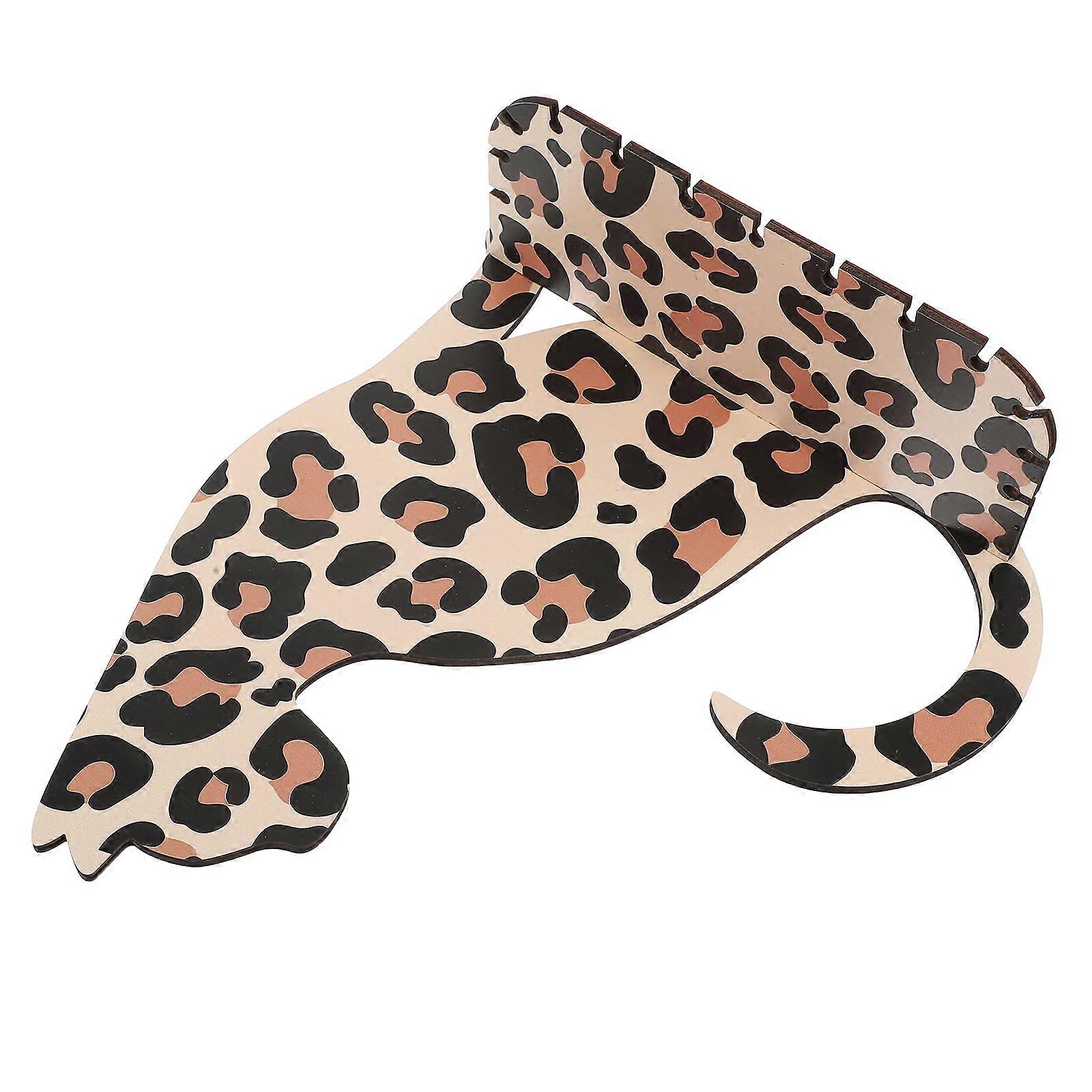 Crystal Display Shelf Wall Mount with Leopard Print Cat Shape for 3Pcs Wooden Rack