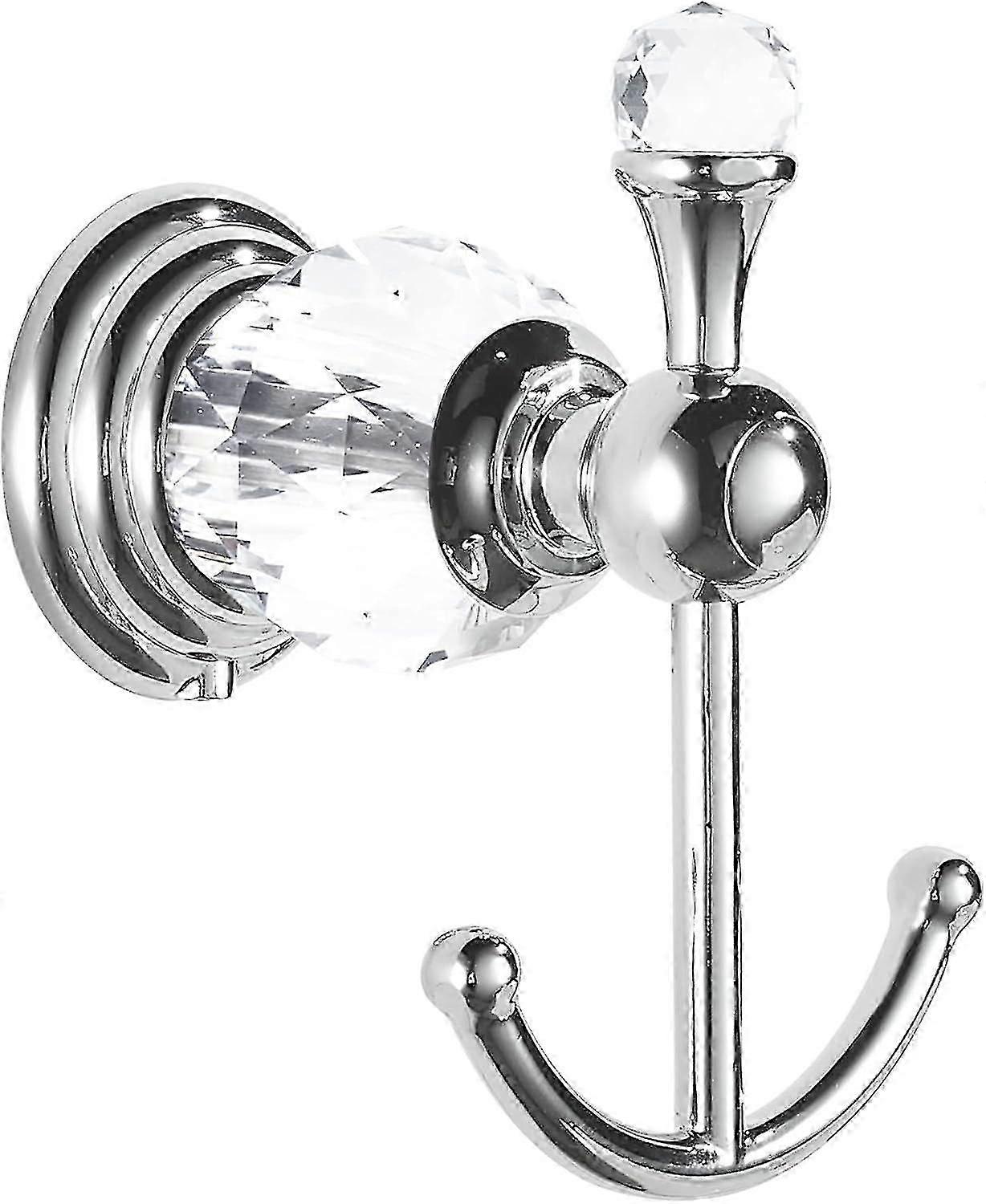 Crystal Towel Hook Chrome, Bath Robe Hook, Silver Bathroom Wall Hooks Double For