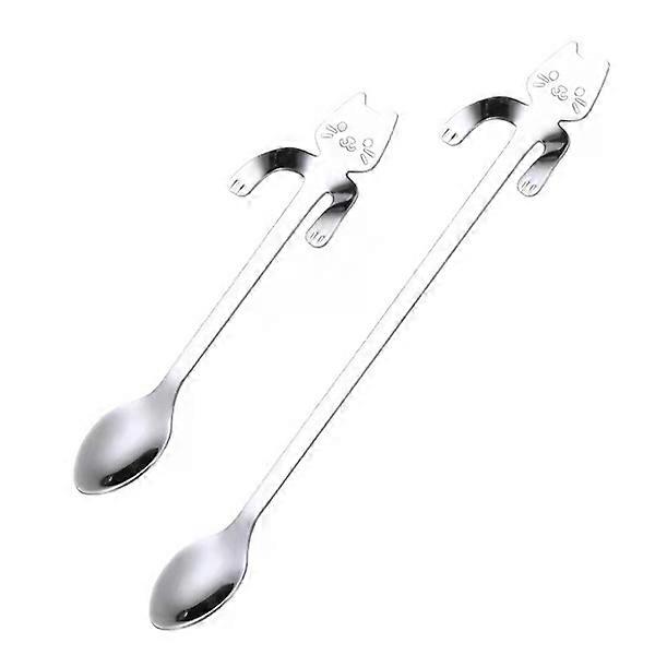Stainless Steel Coffee TeaSpoon with Cat Long Handle Soup/Honey Spoons Dinnerware Drinkware Tea & Coffee Tools Color:silver Material:alloy