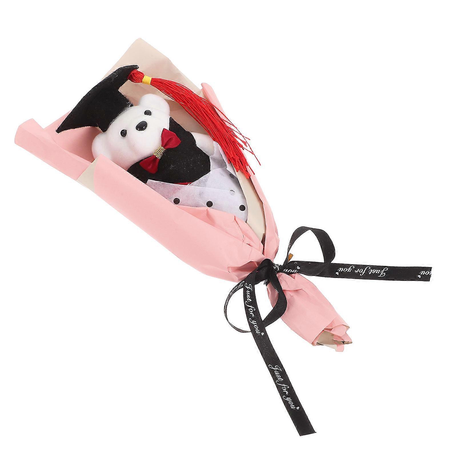 Cute Plush Bear Bouquet 5Pcs Artificial Flower Arrangement Ideal For Graduation Party Settings With Pink Color And Design