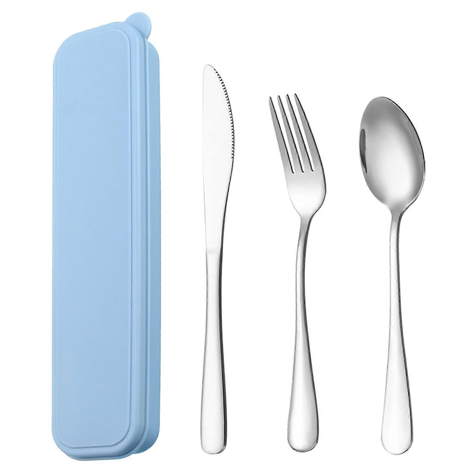 Cutlery Set with Portable Box, Stainless Knife and Fork Flatware Sets Camping Utensil Set for Picnic, School and Office Tiandi Gai Blue