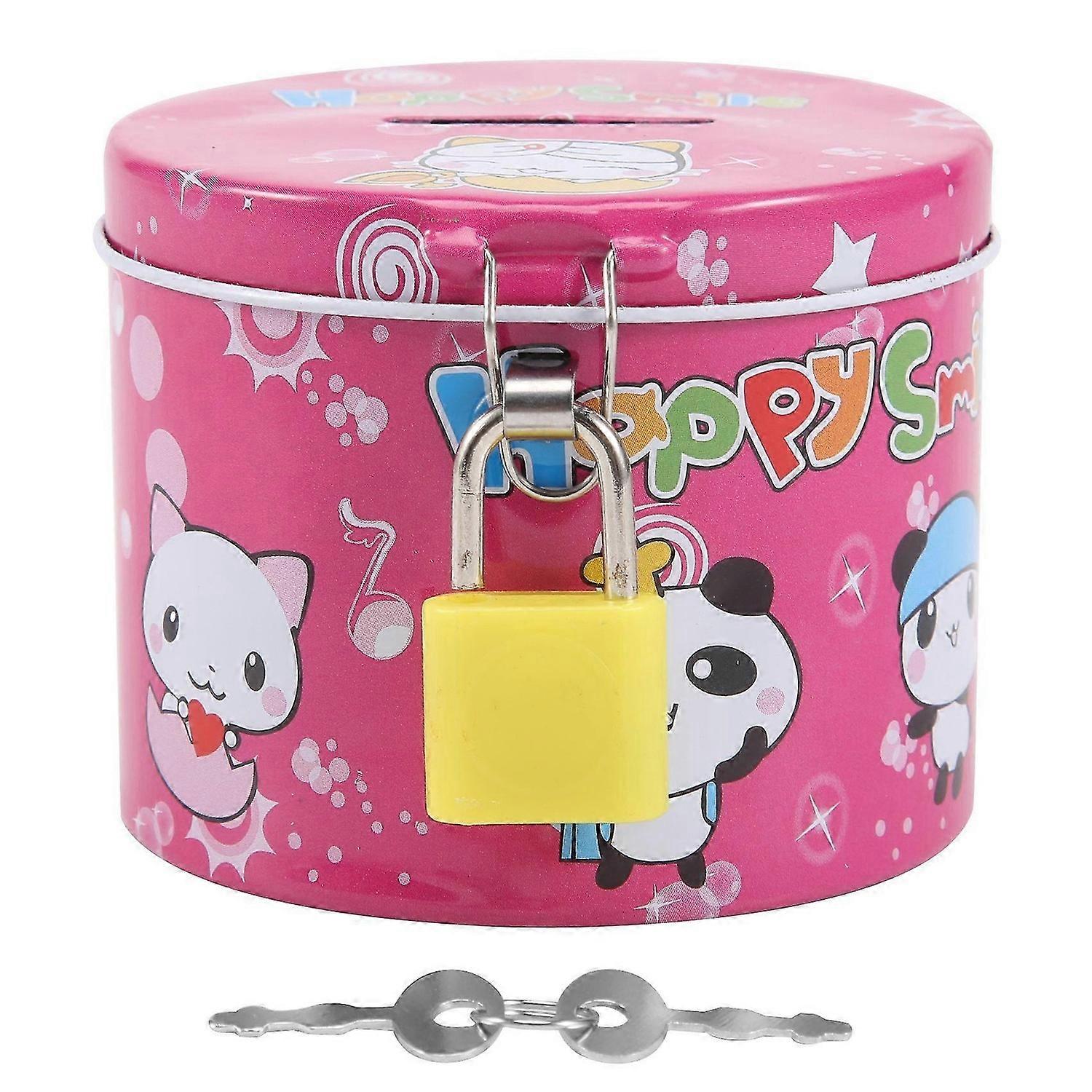 Cylinder Design Cartoon Print Piggy Bank Coin Money Saving Box w Padlock