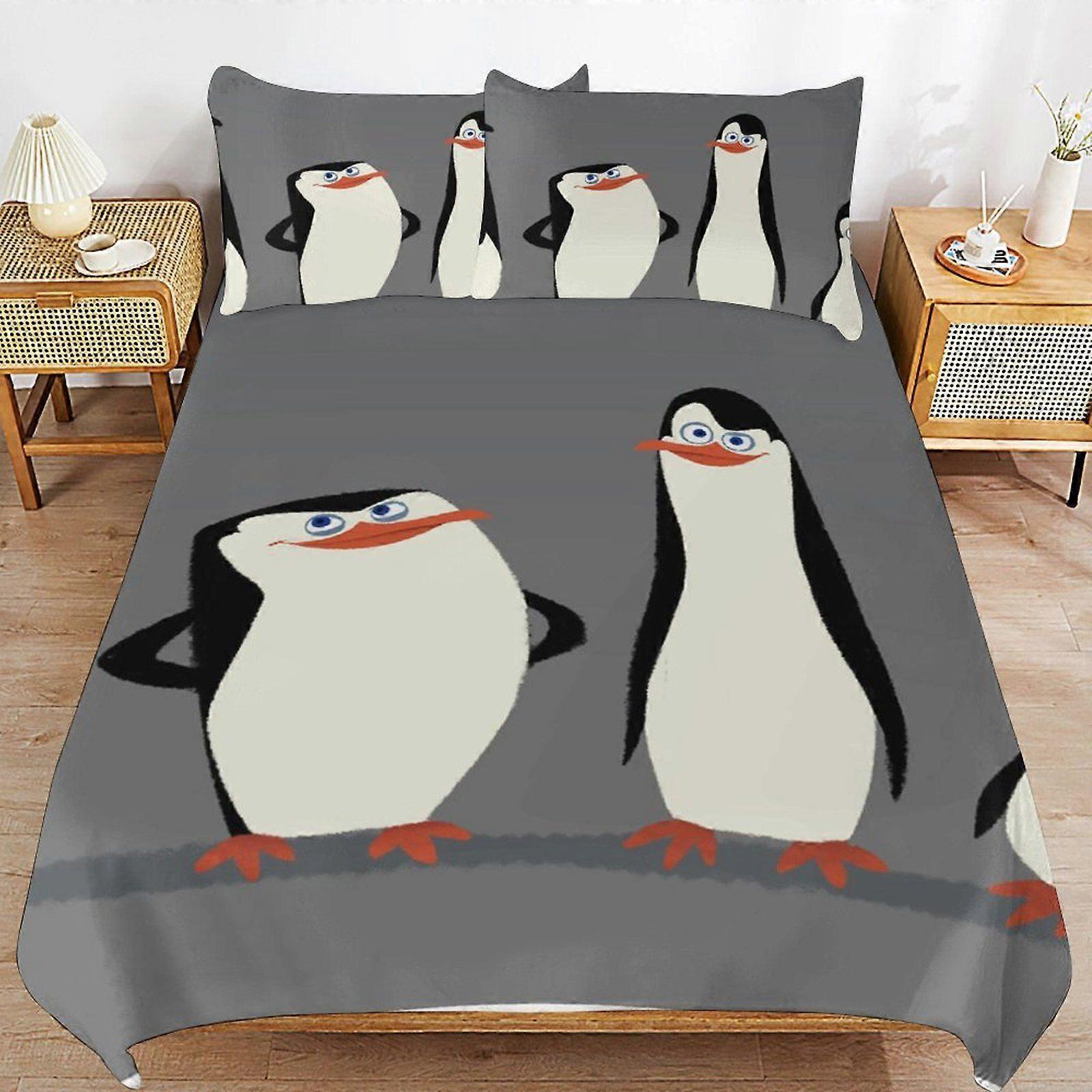 d624 The Penguins of Madagascar Secure Zipper Access Soft Layer Bedding Fabric High Comfort Duvet Cover Sets All Seasons Use b624