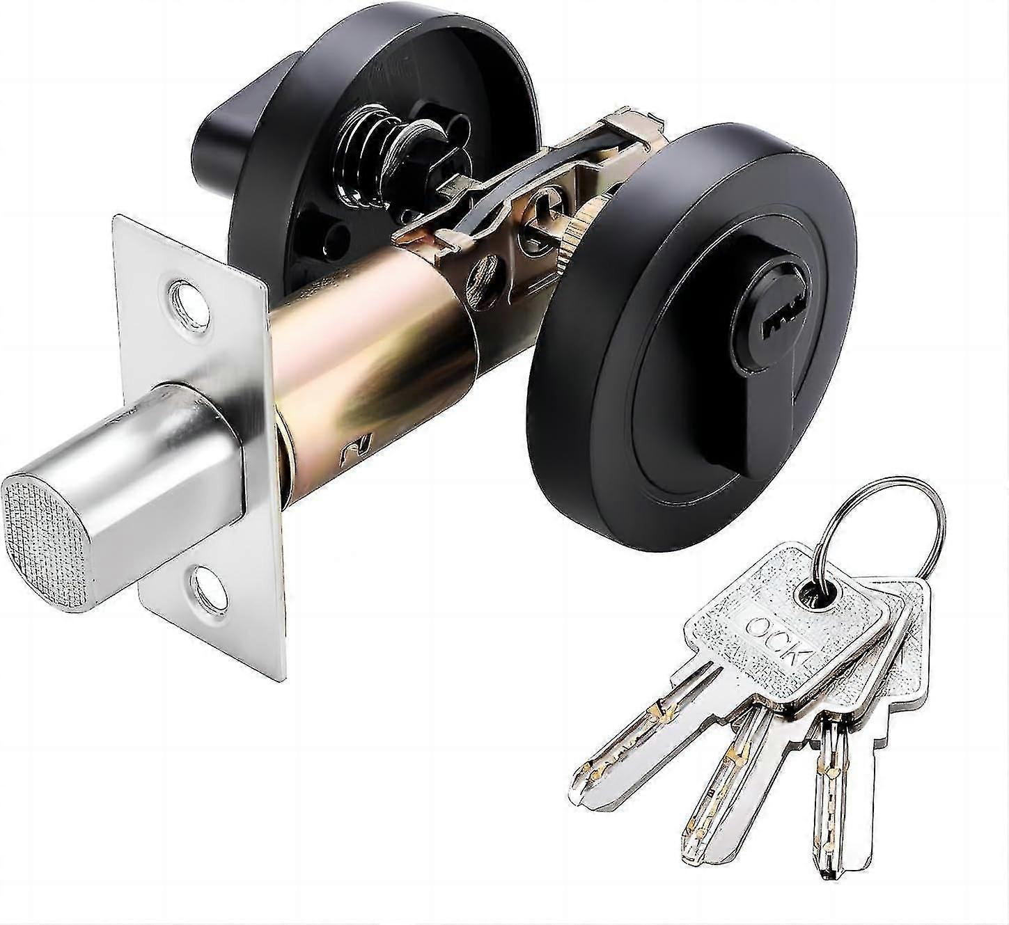Anti-tamper Solid Deadbolt: The door deadbolt comes with a thickened anti-theft solid latch. It can be locked by keys from the outside or the turn button from the inside. Material: The round deadbolt is made up of a solid brass lock cylinder, zinc alloy lock body and brass keys. Anti-corrosion and rust resistance, strong hardness and durable. Wide Application: The deadbolt lock with keys is great for most home or commercial doors. The door lock is suitable for both left and right handed doors. Adjustable Latch: The door lock comes with a 60/70mm adjustable latch, and it can fit doors with a thickness from 38mm to 50mm. Easy to Install: All accessories are included, and it is easy to install with a Phillips head screwdriver. What's included:Bolts for both sides of the door 1 x Latch 1 x Strike plate 3 x keys Mounting screws.Items from Sheng Xinshun's shop