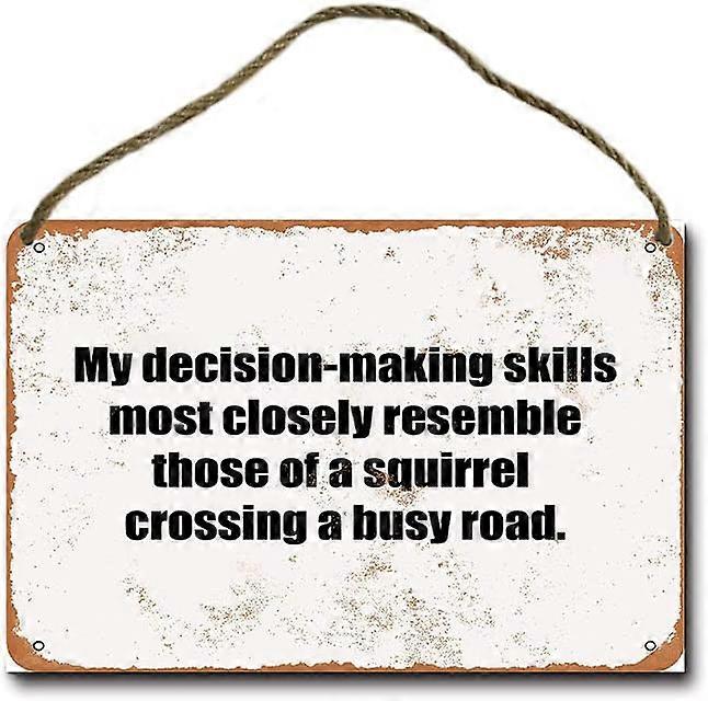 Decision-Making Skills of a Squirrel Crossing a Busy Road Retro Hanging Wood Sign 8"x12"
