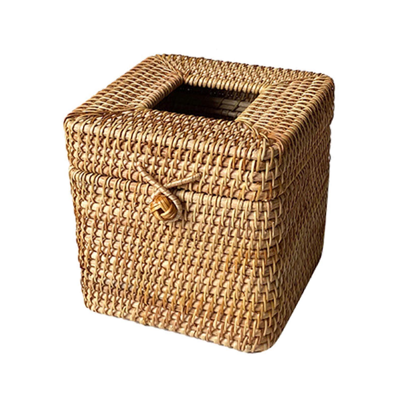 Decorative Cubes Tissue Box with Side Organizers for Desk Dresser in Caramels Handwoven Designs Daily Casual Use Multicolor