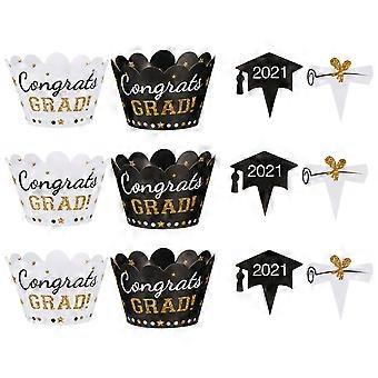 Decorative Graduation Cake Wrapper and Topper for 6Sets Use