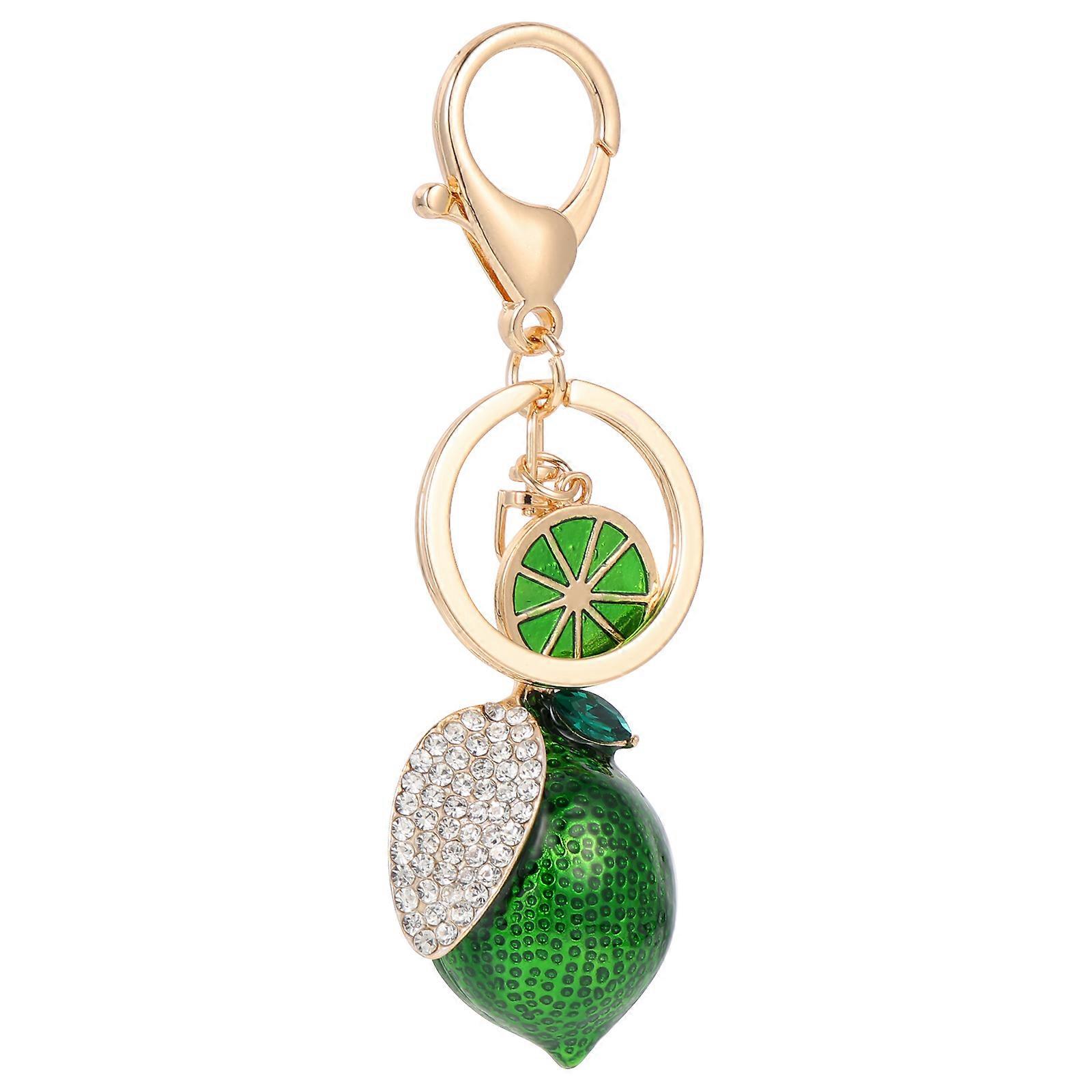 Decorative Key Chain Lemon-Shaped Pendant for Daily Use Alloy Green Rhinestone Key Decoration 1Pack