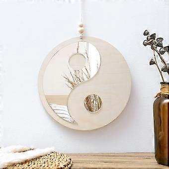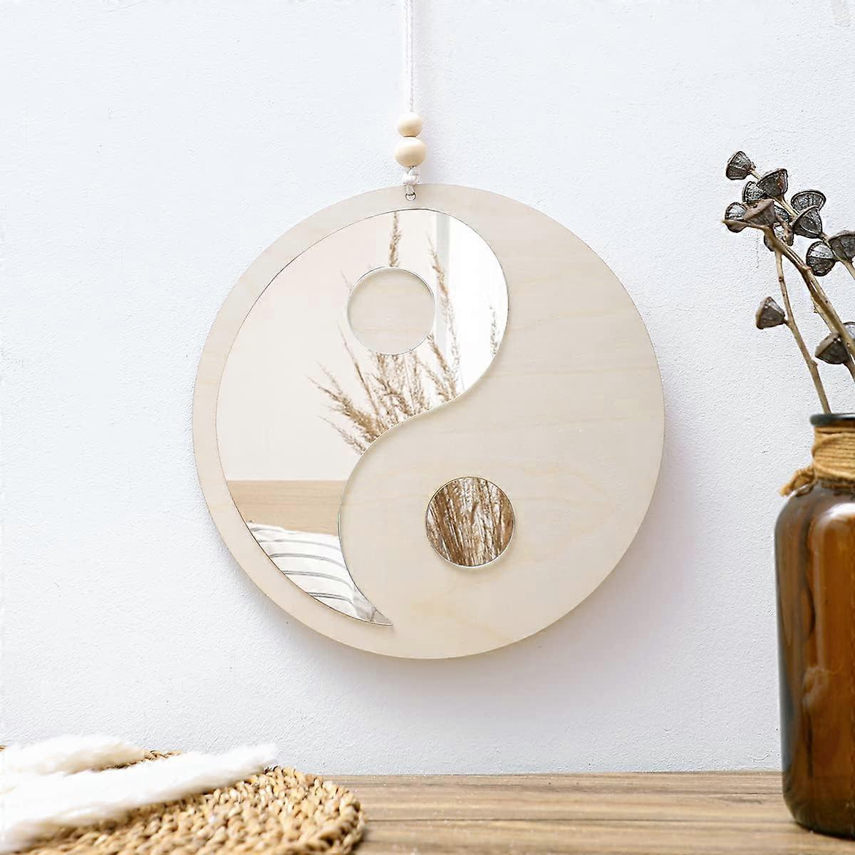 Decorative Mirror - Boho Wood Mirror Macrame Taiji Small Round Mirror Wall Decor