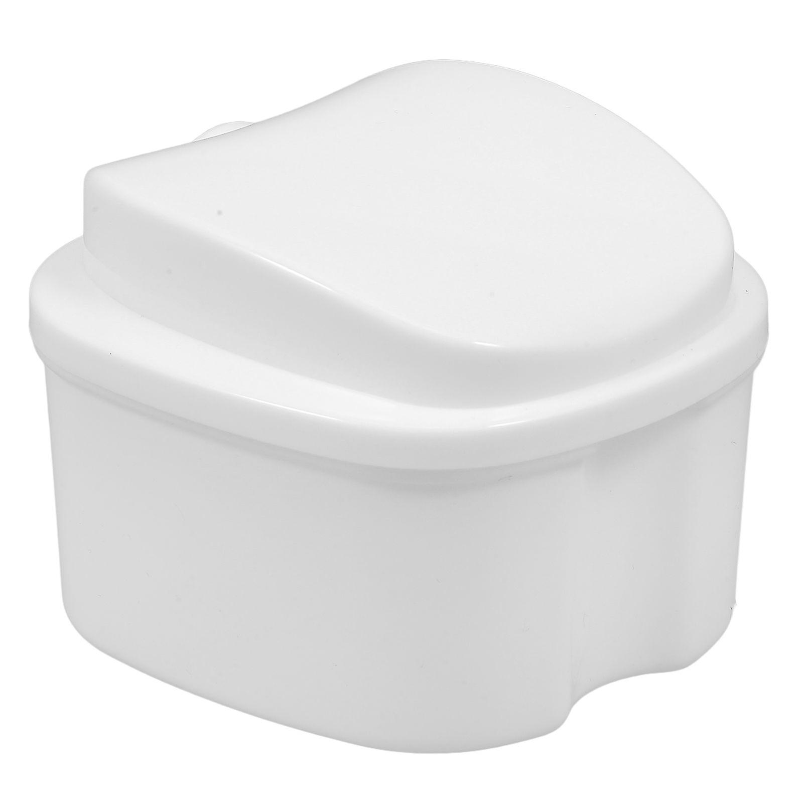 Denture Care Box Denture Storage Box Case Teeth Filter with Hole for False Teeth Use (White)