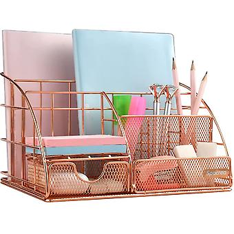 Bigger space and better design: This stylish and modern desk organizer has 5 compartments and 1 sliding drawer, Compartments are in various size and shape - easy to keep important documents, pens, paper clips, pencils, scissors etc, And also you don't have to worry about anything falling down cause it's completely enclosed.^ Shiny and sturdy: Made of sturdy steel mesh and wire to make the construction of desk organizer much sturdier and reliable; Not only that, we adopting premium electroplating technology, which will easily blend into other desk supplies,adding a contemporary touch to your home, school, office, mail rooms etc.^ Risk-free purchase:committed to creating high-end, creative and stylish household products. We fully trust our products and are committed to satisfying our customers. ^ More efficient: Mesh design allows you to easily find anything you need. Put everything in order Having a tidy desk makes you work twice as fast and helps you become more creative throughout the day.^ Best gift idea: convenient and practical desk organizer is a fashionable gift, perfect for you or your family and friends who work remotely and do online classes from home.